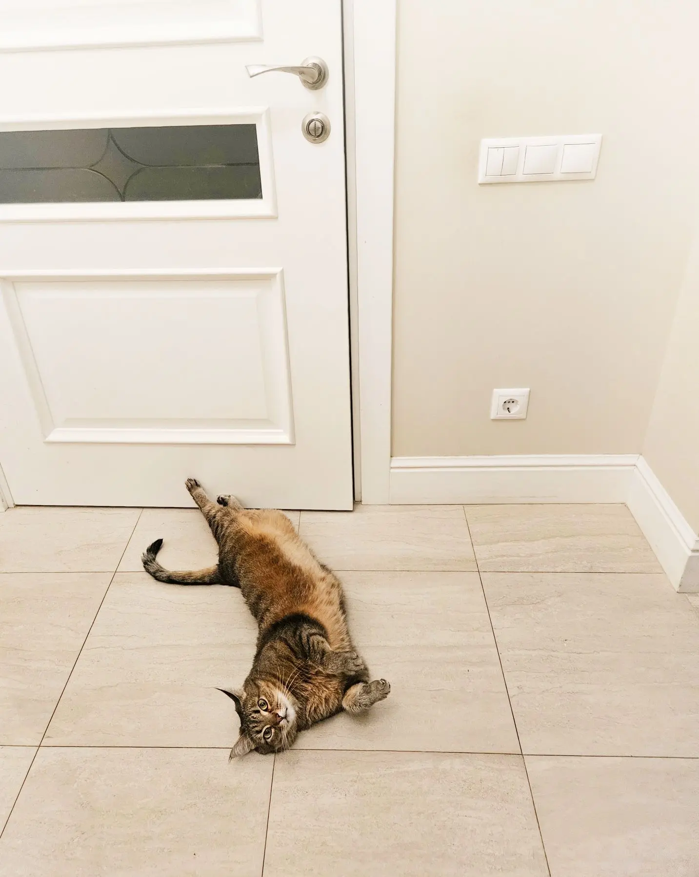 Перед тем, как выйти из дома, Яков сначала яростно дерёт коврик у двери. Таков ритуал. Перед выходом кот точит когти. Готовится, если что, держать бой с соседскими собаками — с одного боку у нас придурошный щен, с другого — глухой мопс.
