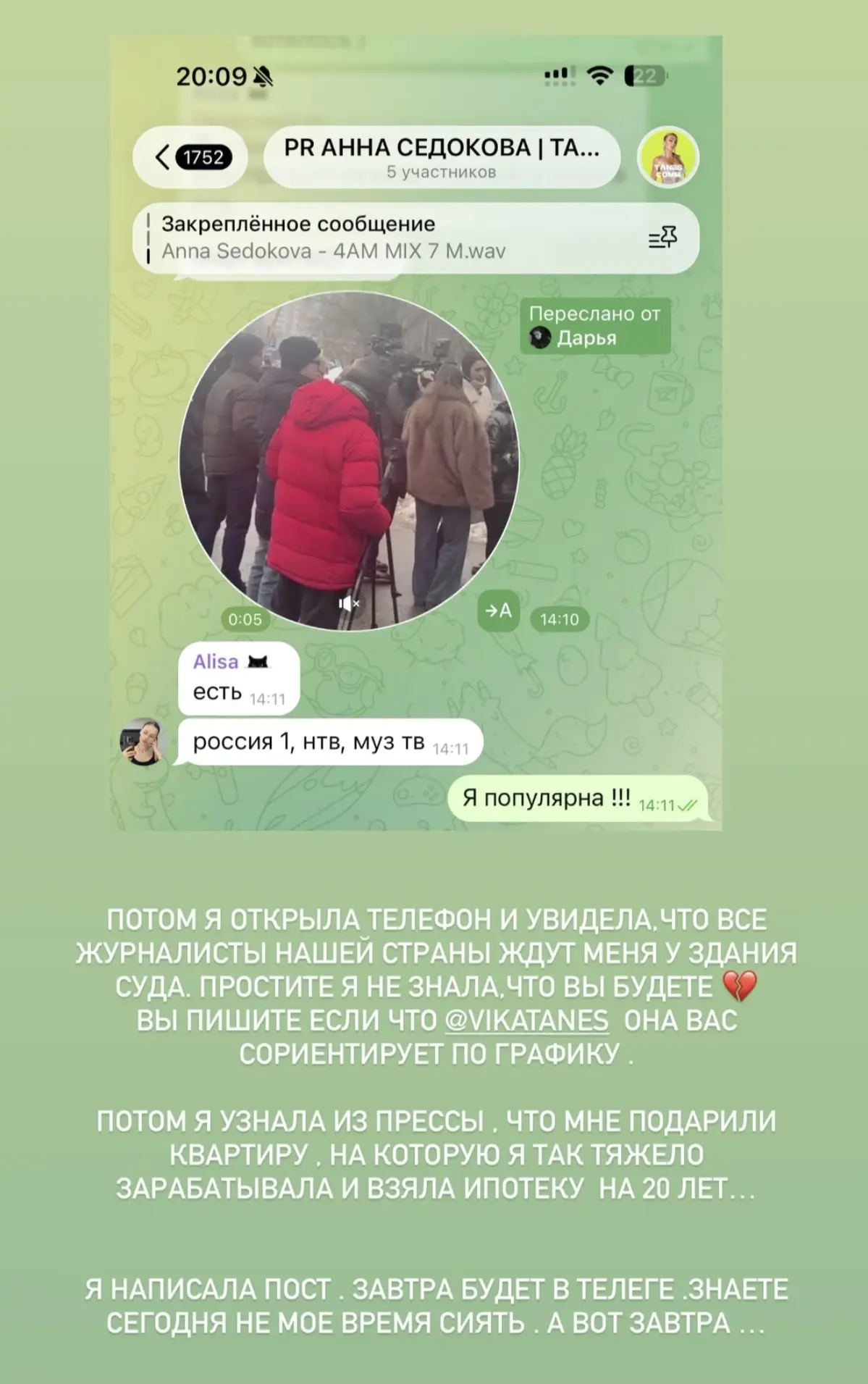 Аннушка Седокова прервала молчание и в своей фирменной сбивчивой и путанной манере дала понять: не дарил ей Янис никакие квартиры. Все заработала сама и в ипотеку.