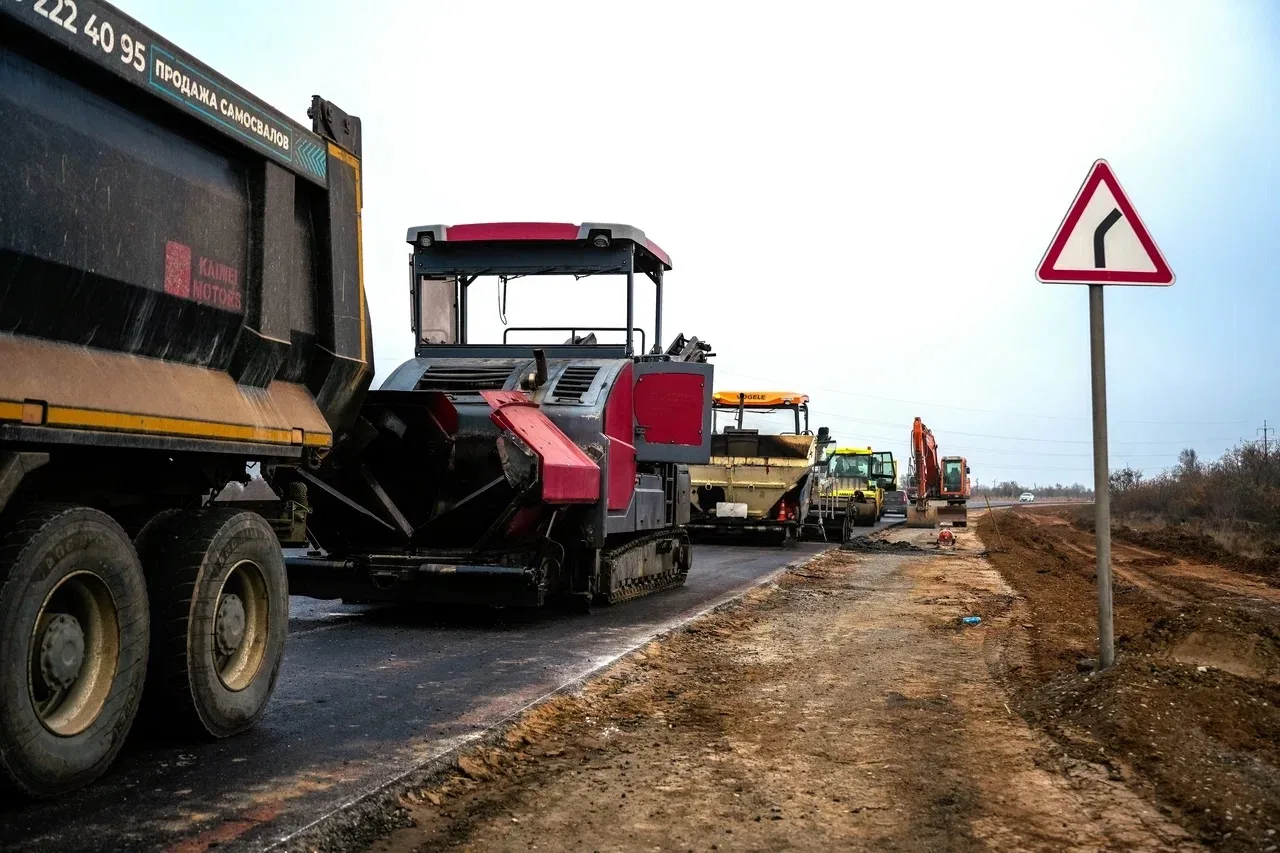 Первый слой асфальта уложен на кольцевой развязке Восточного обхода Астрахани.