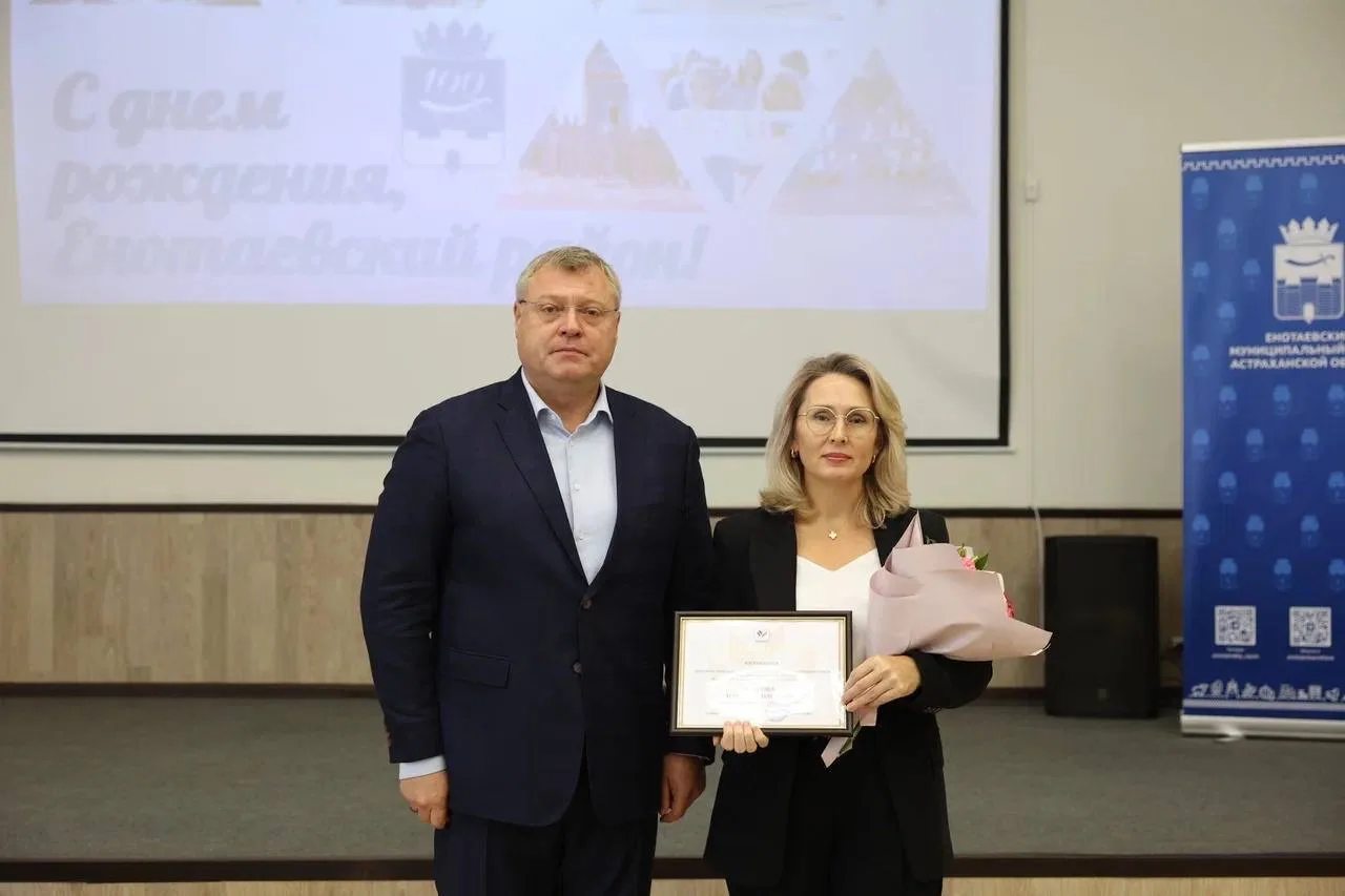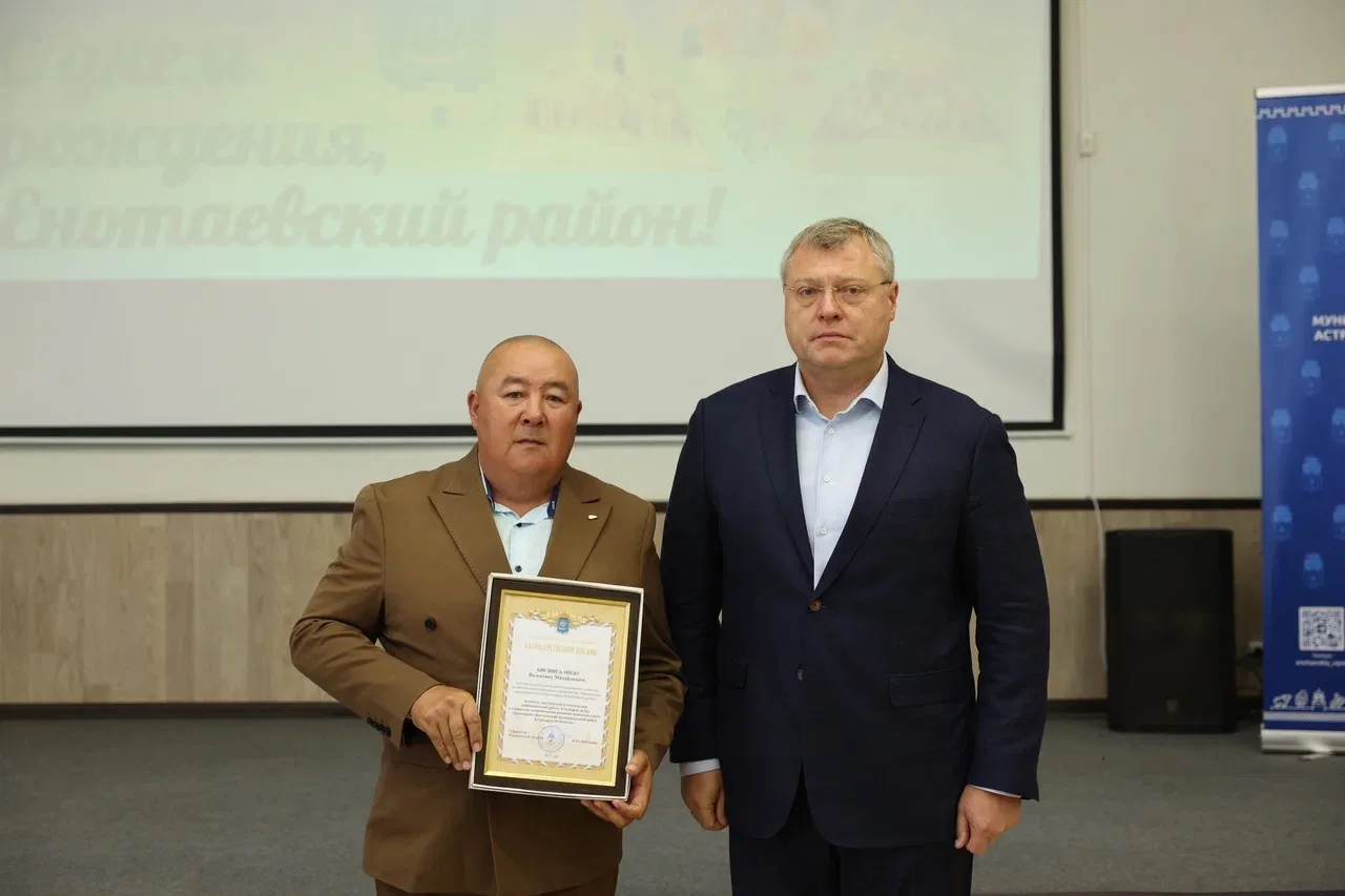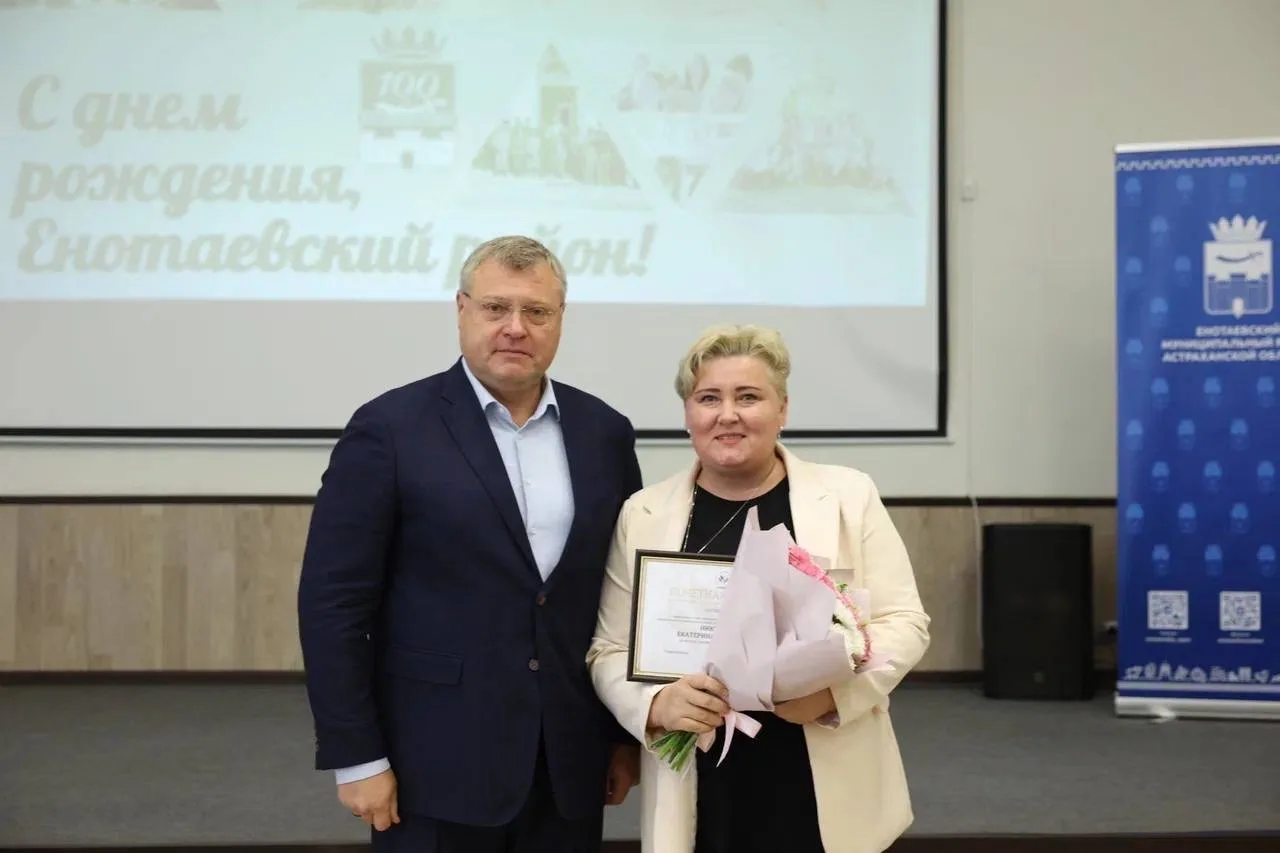 Отметили 100-летие Енотаевского района. Самые активные местные жители удостоены заслуженных наград.