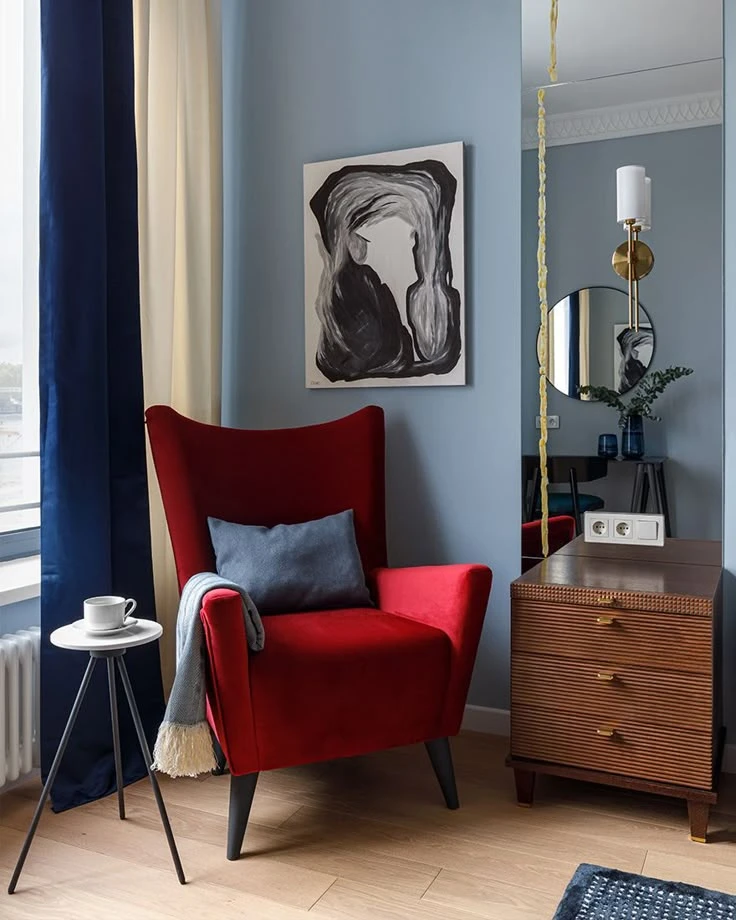 Подушка, ваза, кресло, плед. Один яркий акцент в спокойной комнате добавляет характер. Красный – про энергию и весенний старт.
