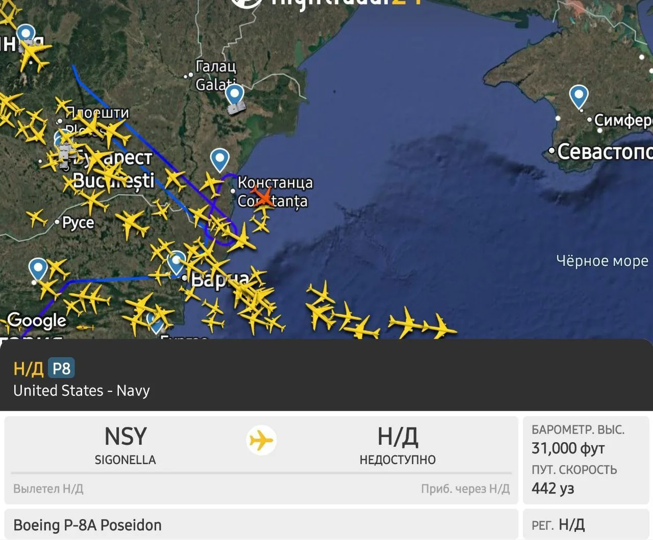 Американский самолёт дальней радиолокационной разведки Boeing P-8A Poseidon приступил к разведке Крыма над акваторией Чёрного моря.