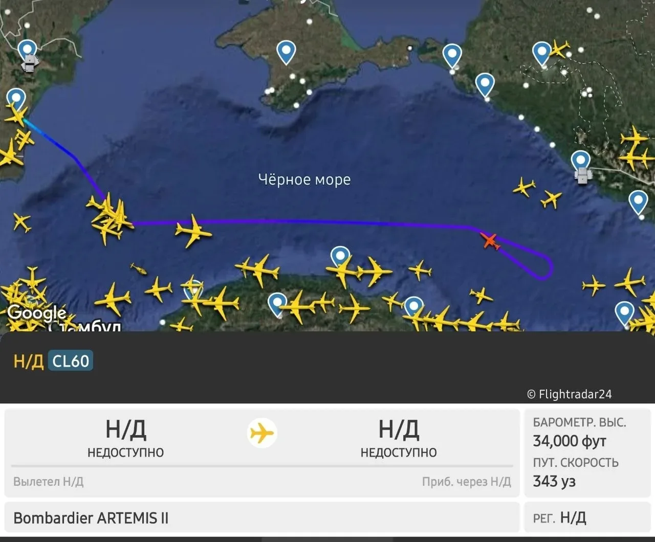 🤬 НАТОвский самолёт разведчик Bombardier ARTEMIS II ведёт агрессивную разведку над акваторией Чёрного моря в районе Крымского моста.