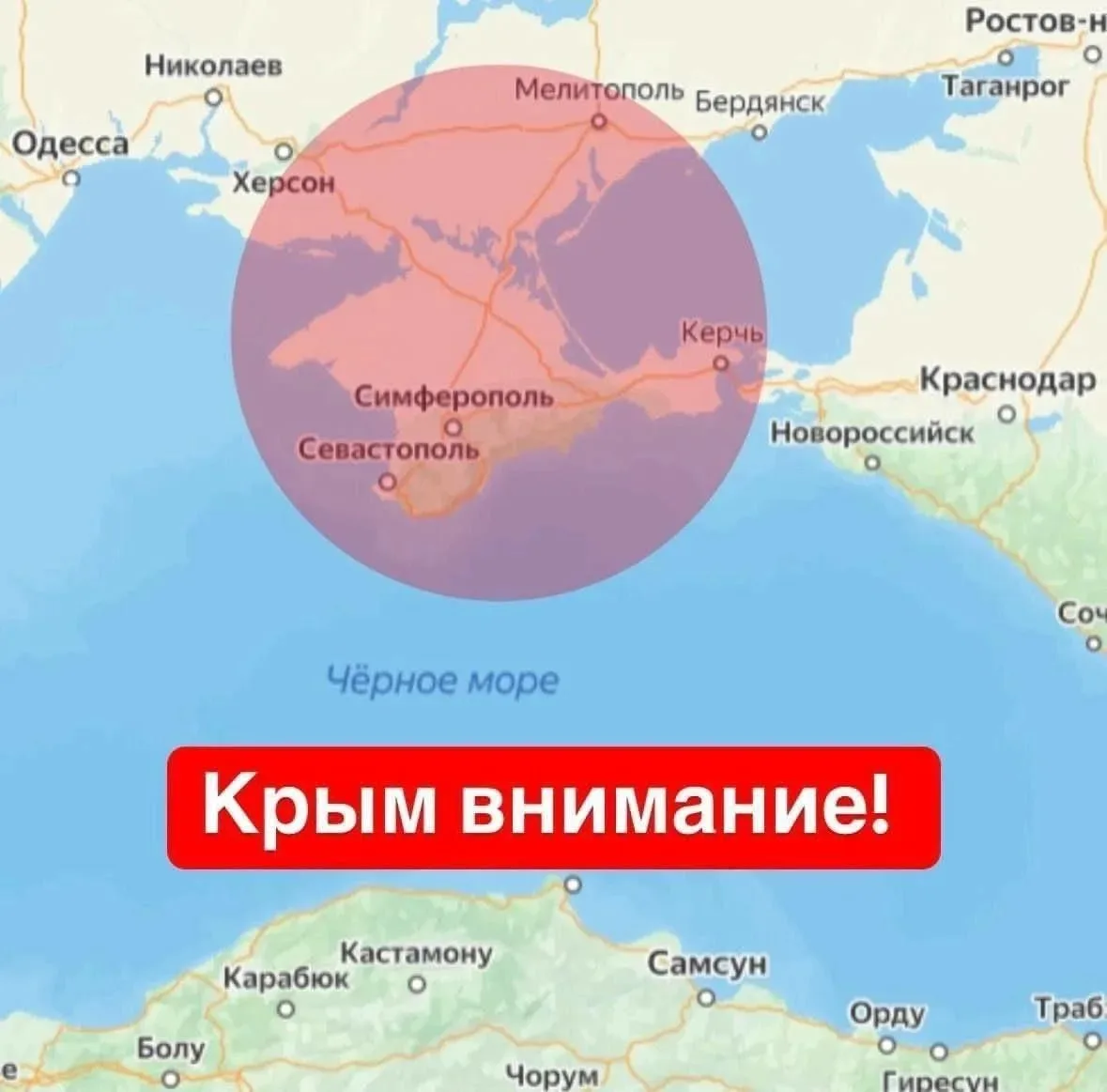 В зоне особого внимания Севастополь, Феодосия, Крымский мост и Новороссийск.