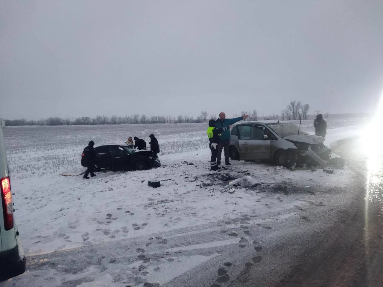 В результате заноса Mercedes-Benz вынесло на «встречку», где он столкнулся с двумя другими машинами — Lada Granta и Ford Focus.