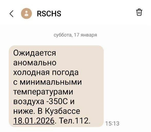 Жителям Кузбасса разослали предупреждение о похолодании до −350°C