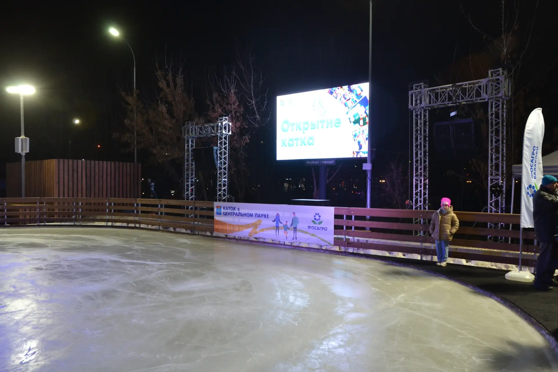 Каток оборудован ровным льдом, который не тает даже при плюсовых температурах благодаря специальной системе охлаждения. Для маленьких посетителей предусмотрены помощники-зверушки, которые помогают делать первые шаги на льду. Еще один подарок городу от компании «ФосАгро» - экран. Теперь в парке он установлен на постоянной основе. Вся информация, анонсы, новые события будут анонсироваться на этом экране.