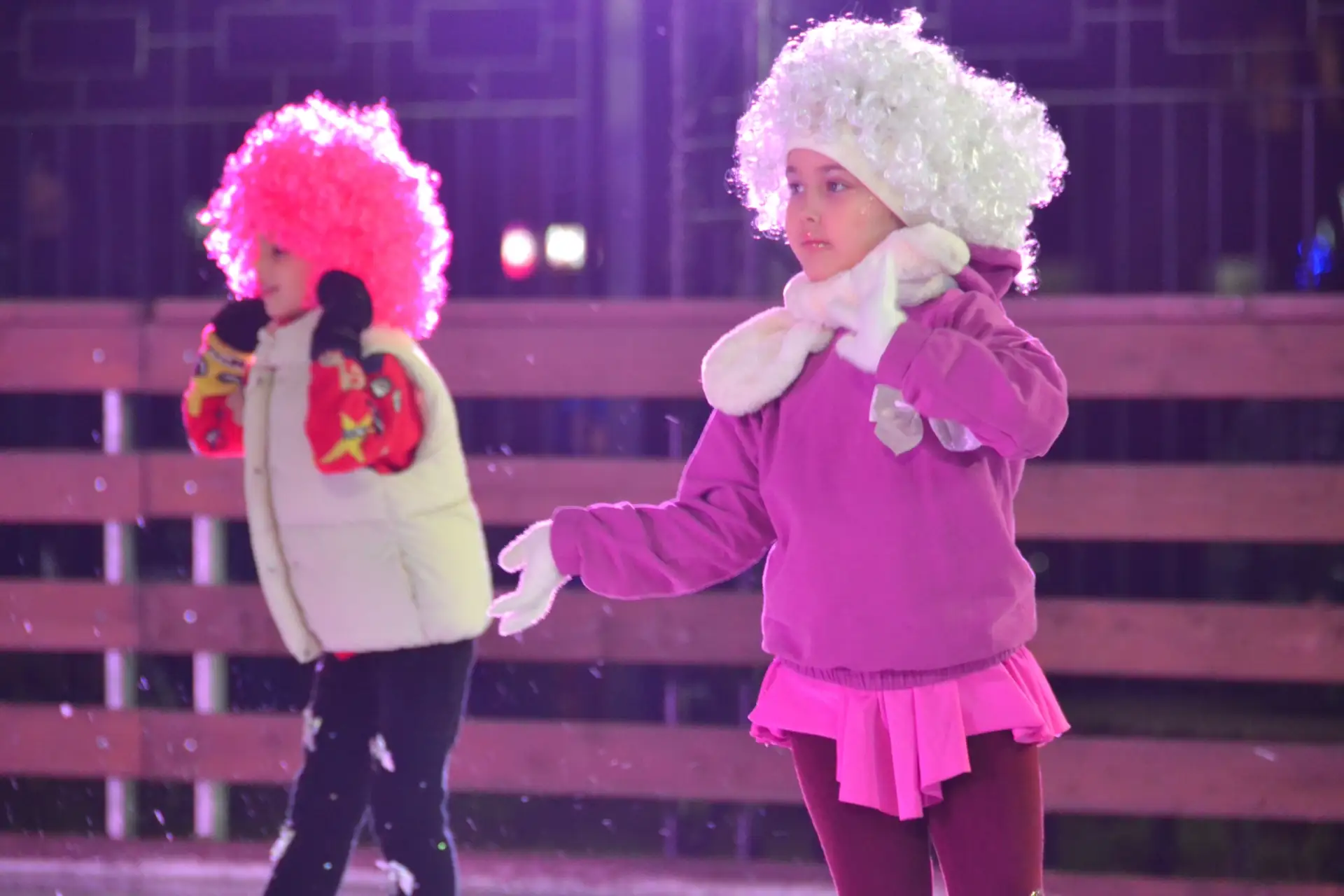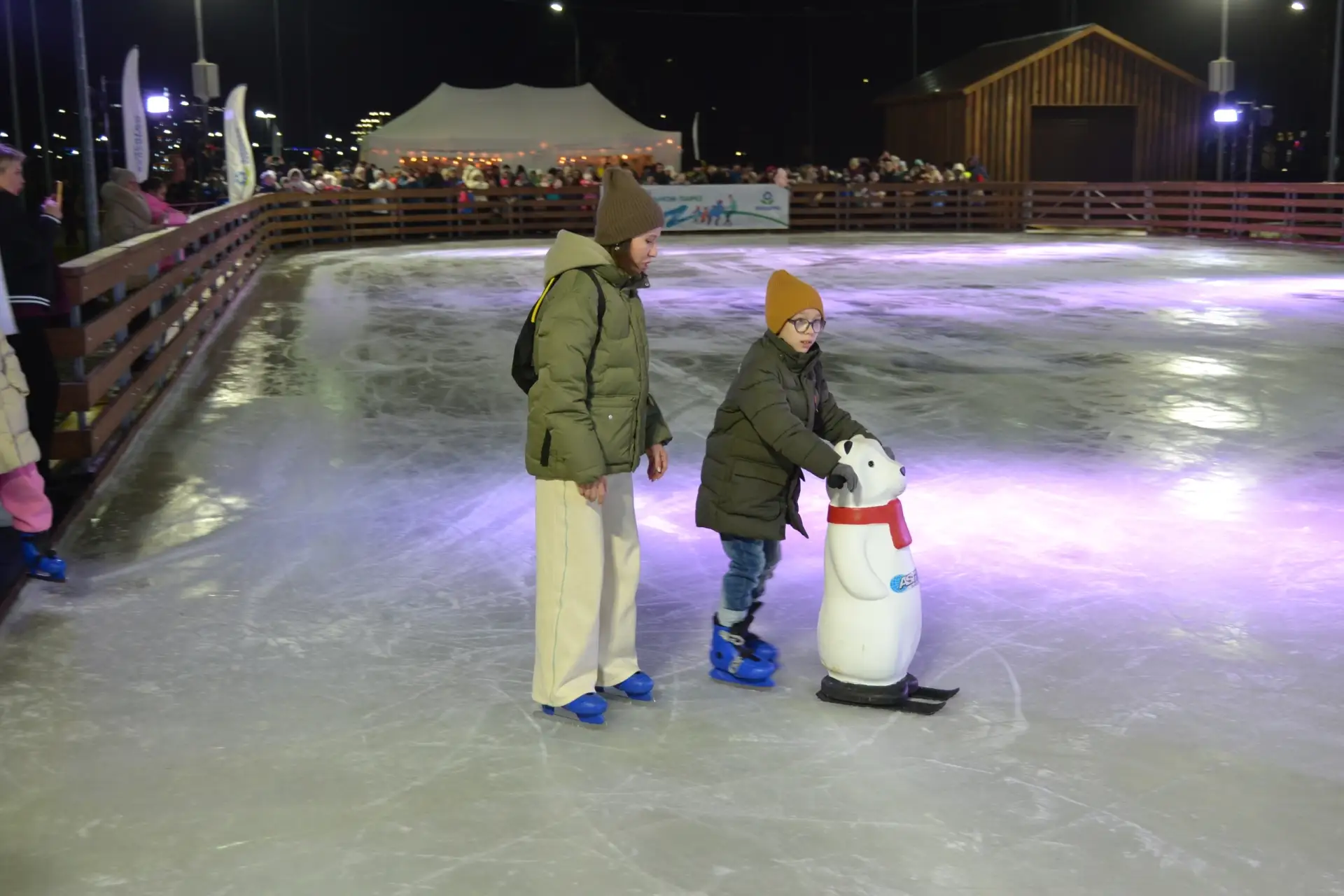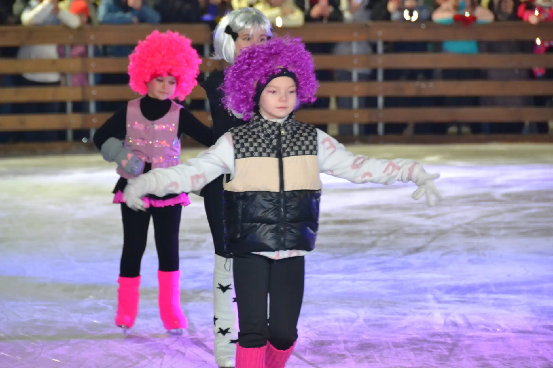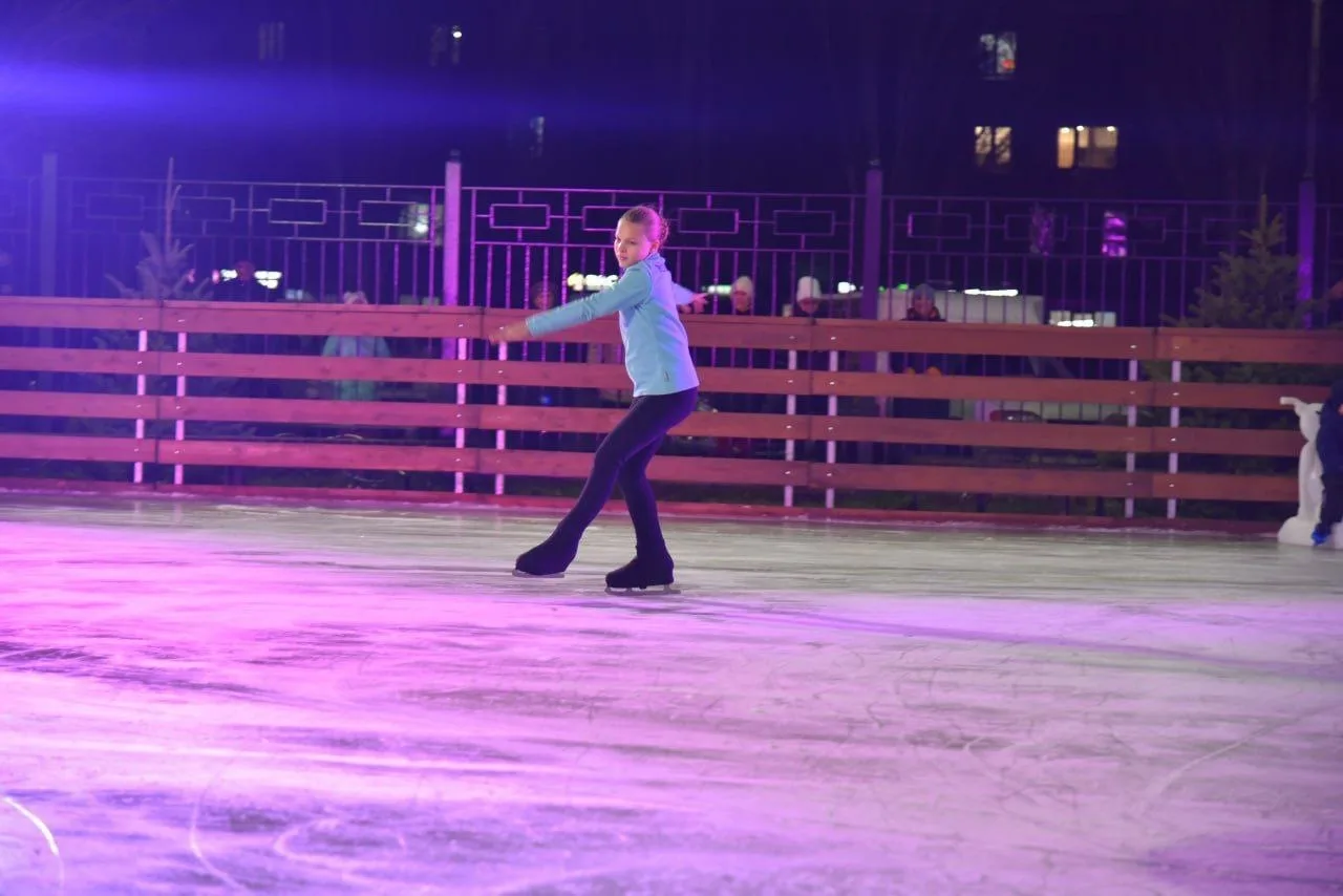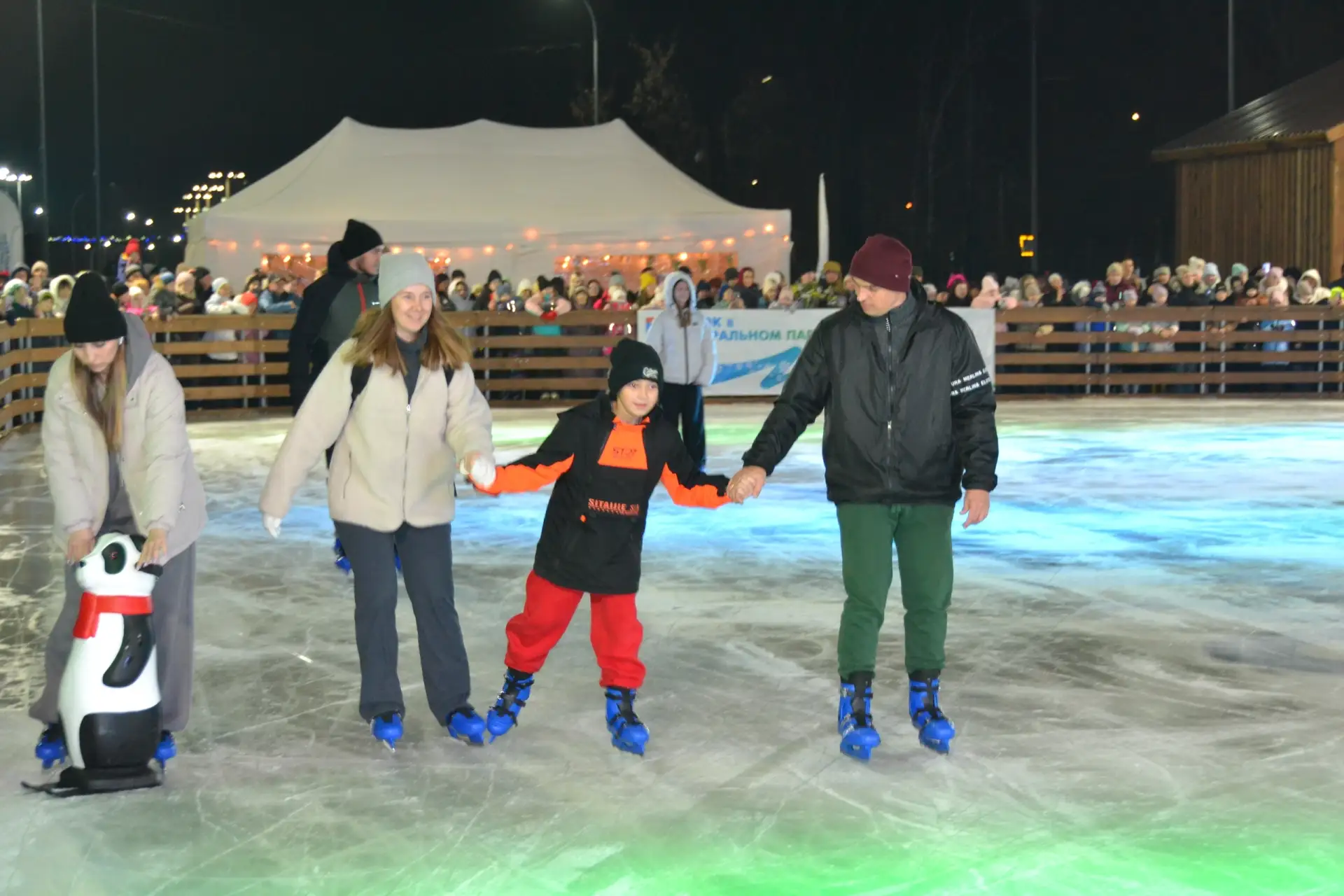 Торжественная церемония открытия катка состояла из приветственных речей, нажатия символической красной кнопки, выступлений юных фигуристов и, конечно, долгожданного катания.