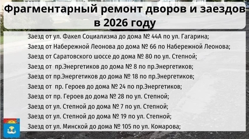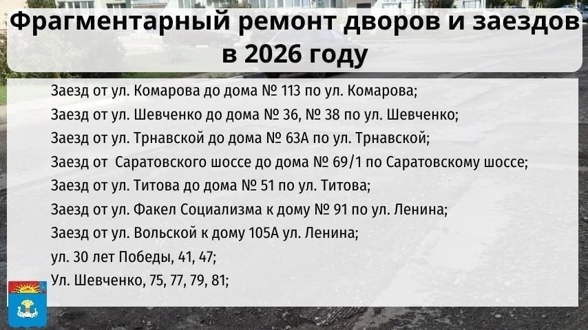 Определены дворы, которые будут отремонтированы в Балаково в этом году.