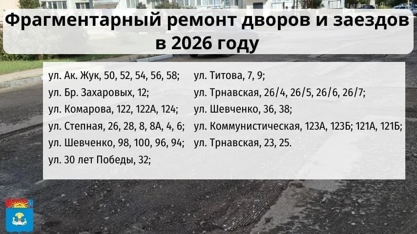В части дворов будет проведён фрагментарный ремонт: заменят участки покрытия с наибольшим износом. Это позволит сохранить общую инфраструктуру дворов, но при этом обновить самые проблемные участки.