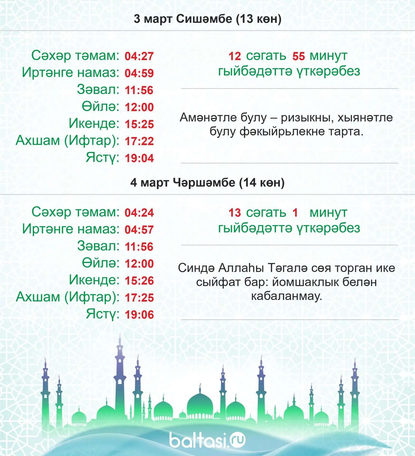 4. Кеше үзенең төкереген йотса, ураза бозылмас.