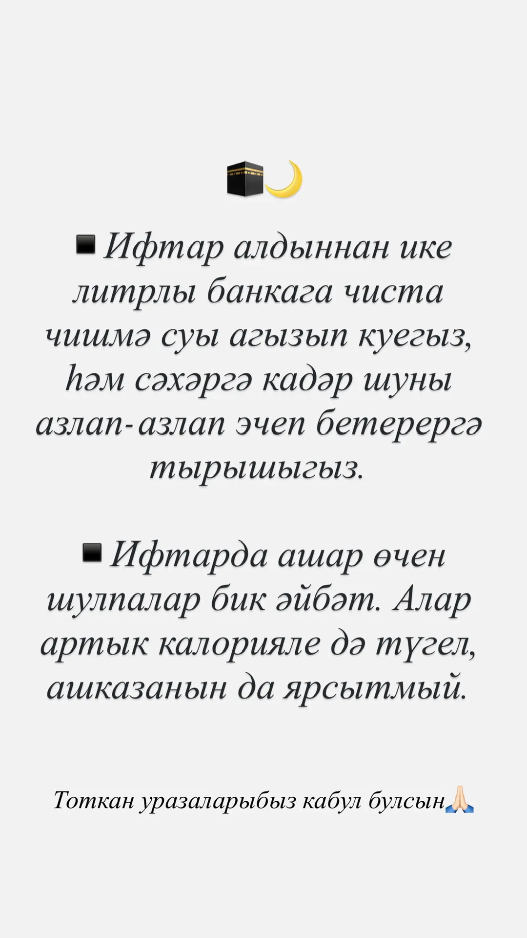 Тоткан уразаларыбыз, кылган игелекләребез кабул булсын!