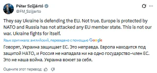 Они говорят, что Украина "защищает ЕС" и это неправда, заявил глава МИД Венгрии