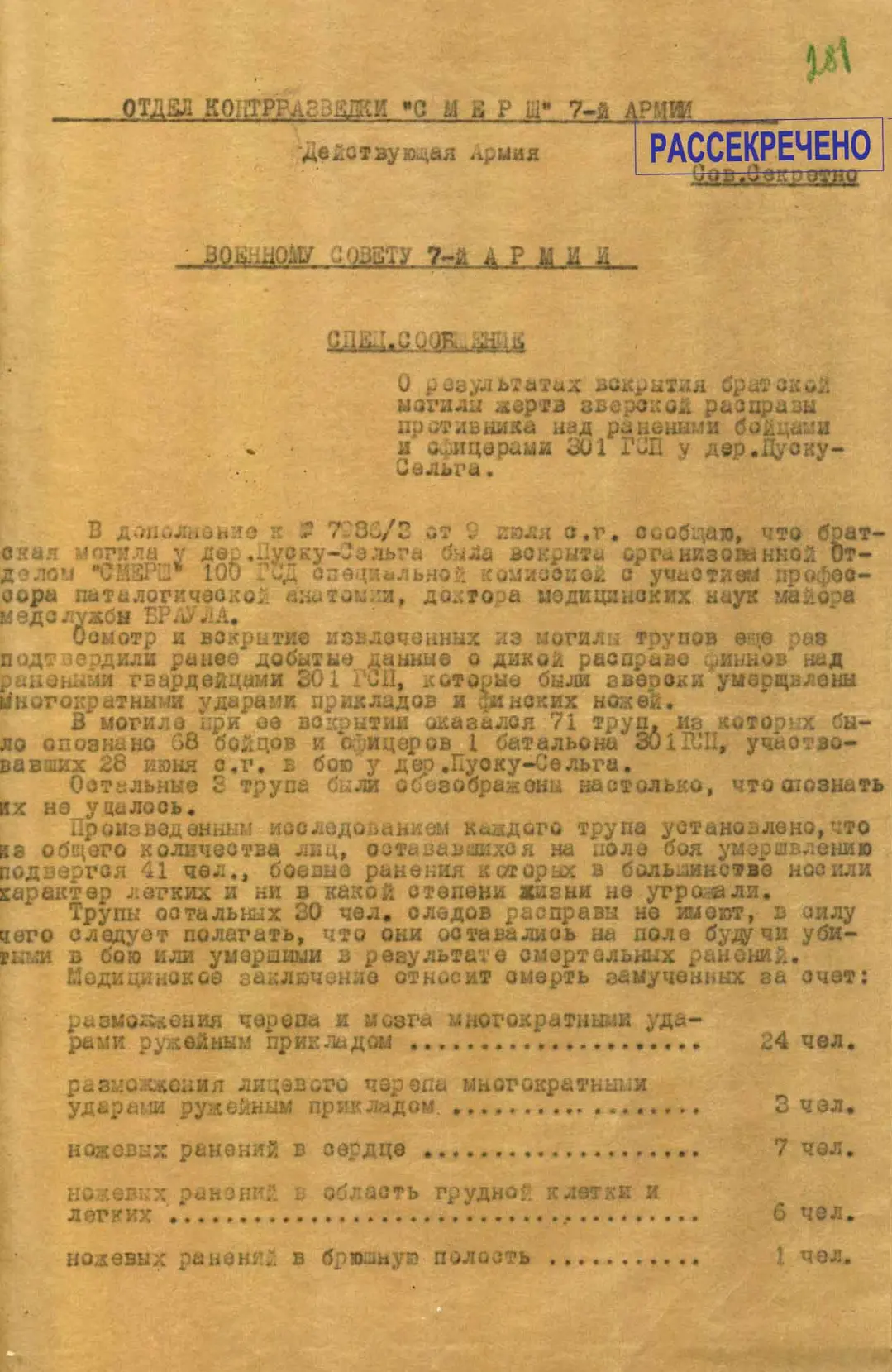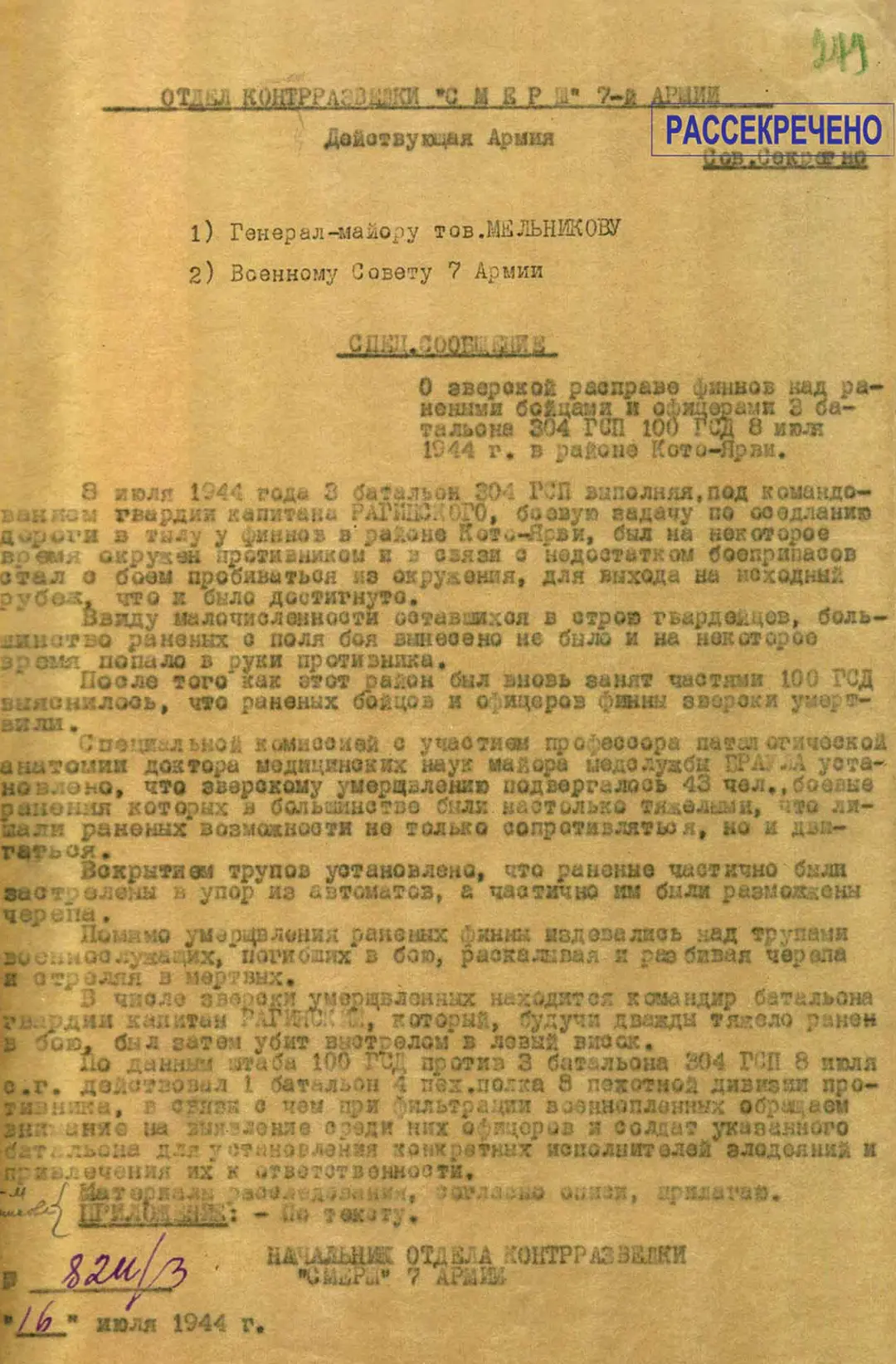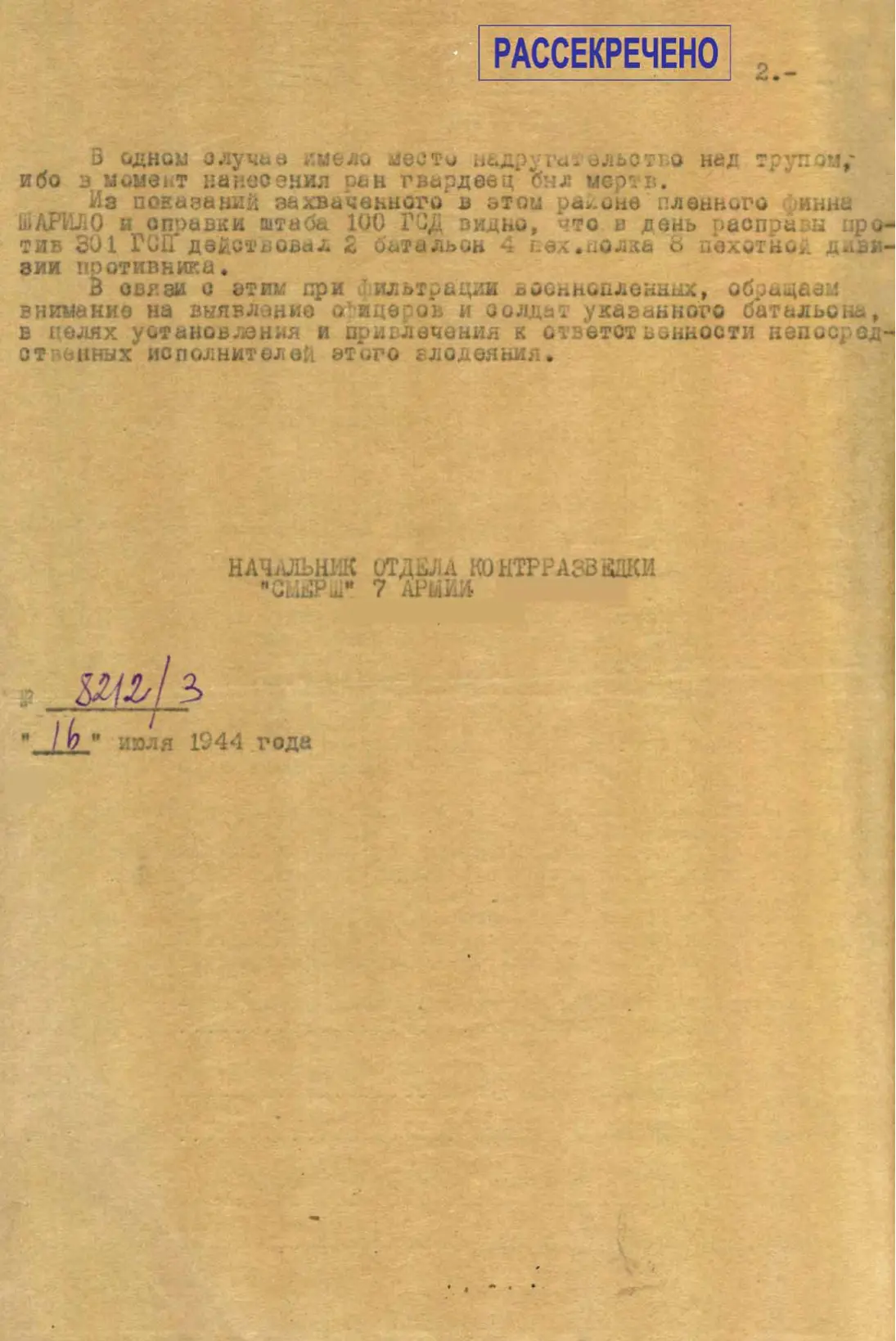 ФСБ опубликовала рассекреченные архивные документы, рассказывающие о жестокости финских оккупантов, воевавших за гитлеровскую Германию.