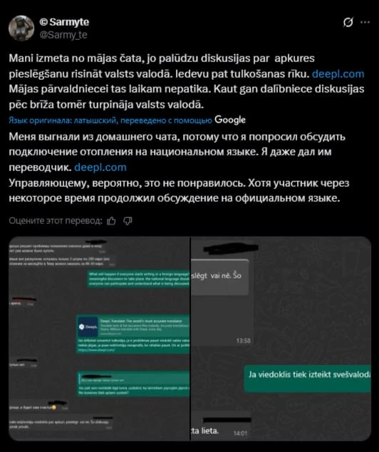 Однако одну из жительниц этот вариант не устроил, и она потребовала писать по-латышски, за что и была исключена из чата.