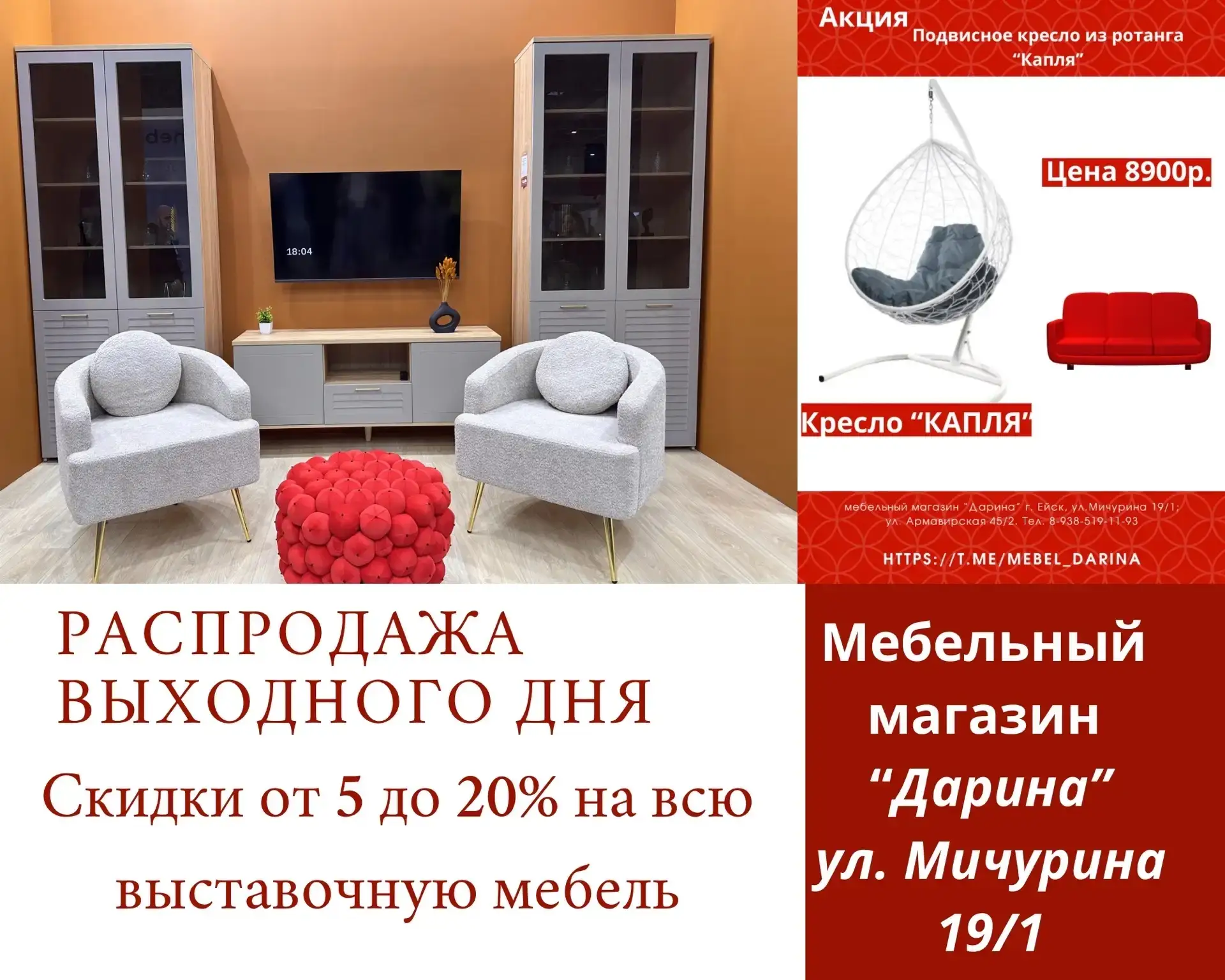 В мебельном магазине «Дарина» скидки от 5% до 20% на весь выставочный зал 💸💸🎉🎉