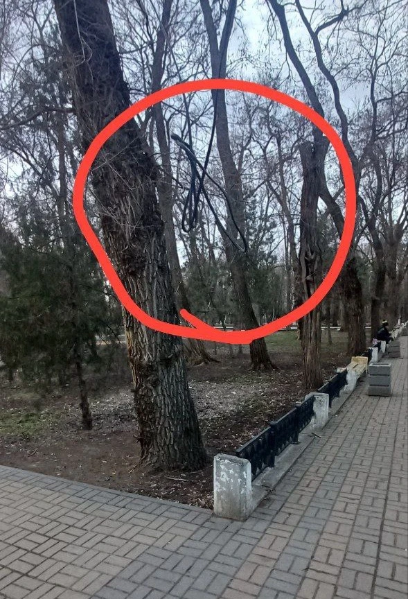 «В центральном парке над входом на детскую площадку висит вот такой комок кабеля - возможно, под напряжением. Также по всему парку встречаются фонари, у которых внизу открыты технологические лючки, а внутри - открытые клеммы и провода. В этом городе есть хозяин, который способен навести порядок хотя бы в таких мелочах?
