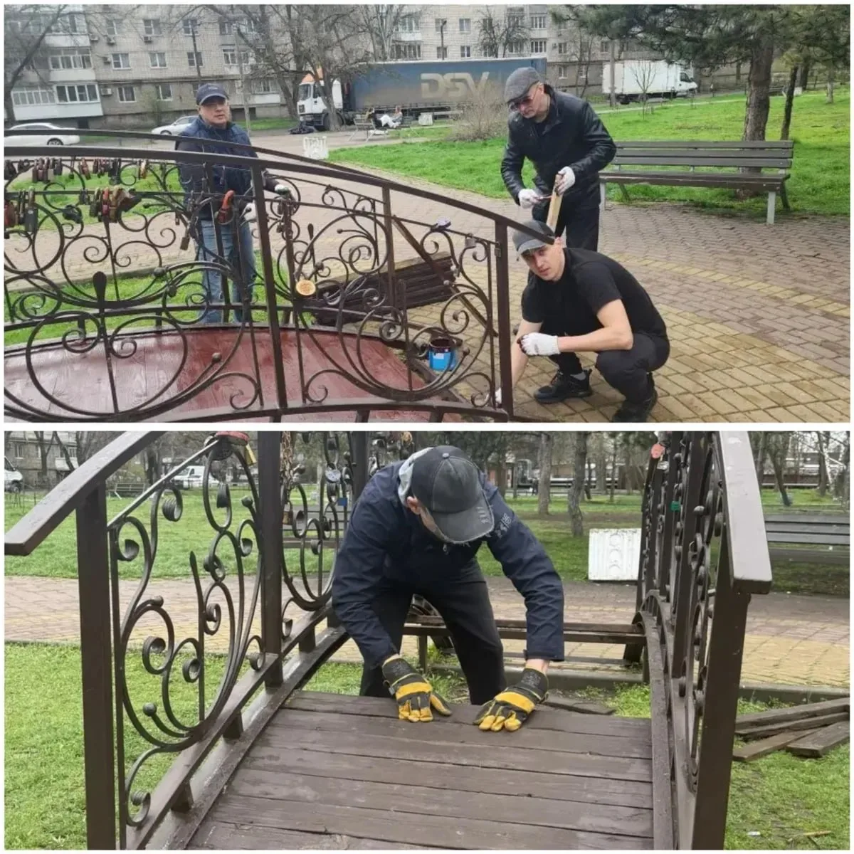 Однако в месячник чистоты сквер начали приводить в порядок. На уборку вышли десятки сотрудников администрации и структурных подразделений. Работники отремонтировали мостик, привели в порядок четыре скамейки, помыли, покрасили и убрали территорию сквера.