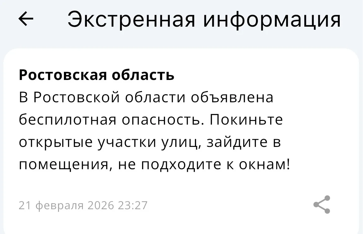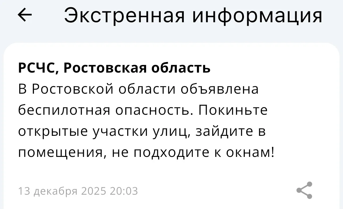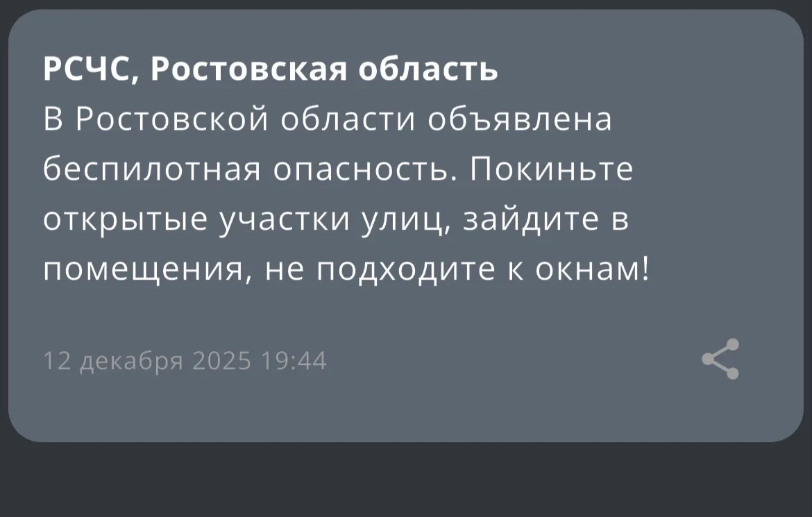 ‼️Экстренная информация РСЧС: В Ростовской области объявлена беспилотная опасность.