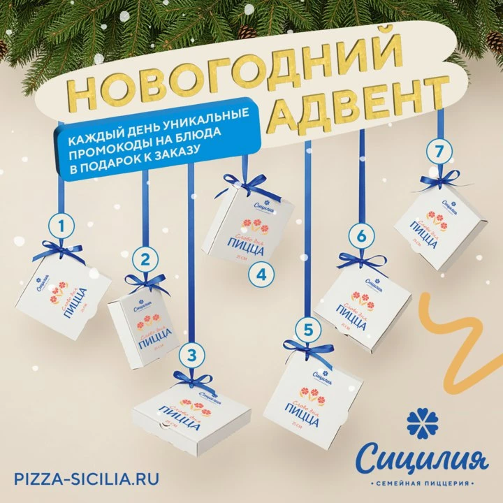 Сеть пиццерий "Сицилия" запускает адвент-календарь подарков на сайте и в приложении!