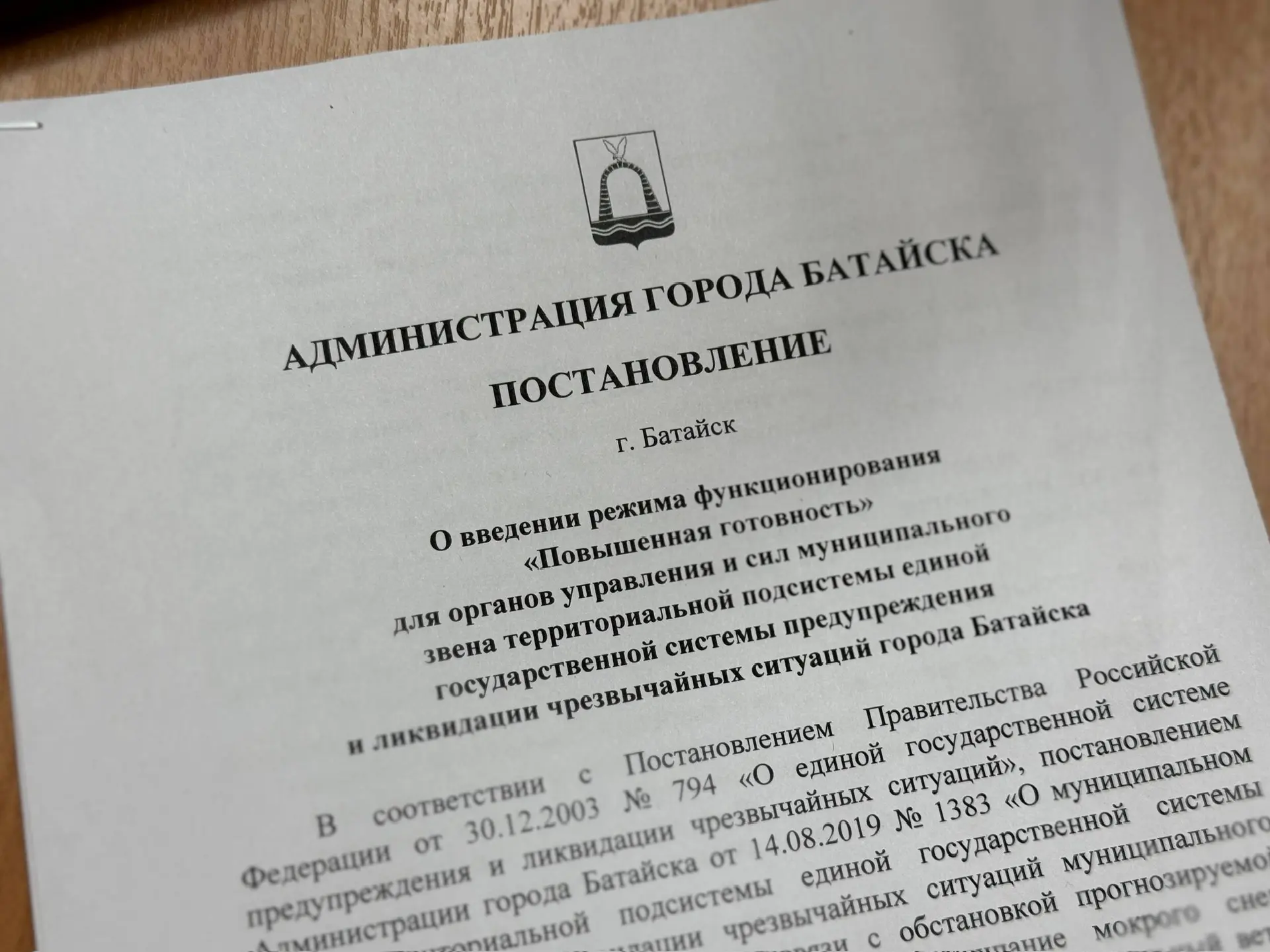 В Батайске ввели режим повышенной готовности