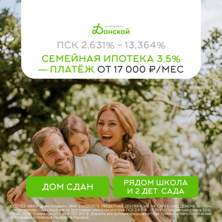 Своя квартира от 17 000 ₽ в месяц. Семейная ипотека 3.5%