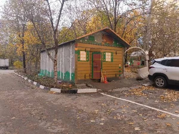Заприметив запущенный участок рядом со своим гаражом на улице Беляева, Александр Федорович взялся за дело. Он расчистил густые заросли, отгородил мусорные баки от будущей площадки диким виноградом и засыпал всю территорию песком. Постепенно это пространство ожило. На собственные средства дедушка купил качели и горки, а сам смастерил лавочки и красивые арки у входа. Металлический короб гаража он превратил в яркую избушку, стены которой украсили любимые мультяшные персонажи.