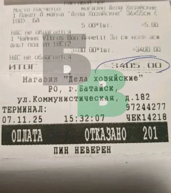 Когда мужчина определился с чайником, наступил момент оплаты. Он приложил банковскую карту к терминалу, попрощался с продавцом и покинул магазин. Только после этого терминал напечатал чек с текстом «В оплате отказано». Людмила тут же вышла на улицу, чтобы окликнуть батайчанина, но его уже не было.