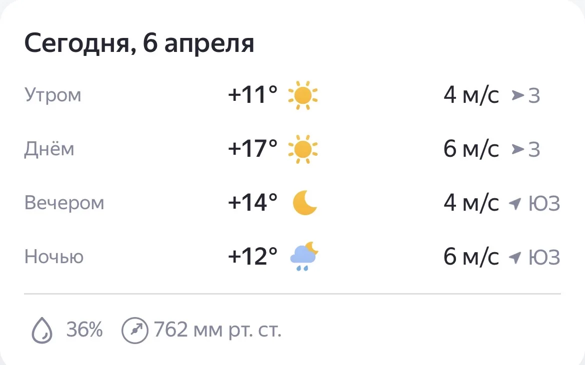 Во вторник, 7 апреля, утром ожидаются осадки, небо затянут тучки. Днем температура не превысит +10 градусов, а вечером +7.