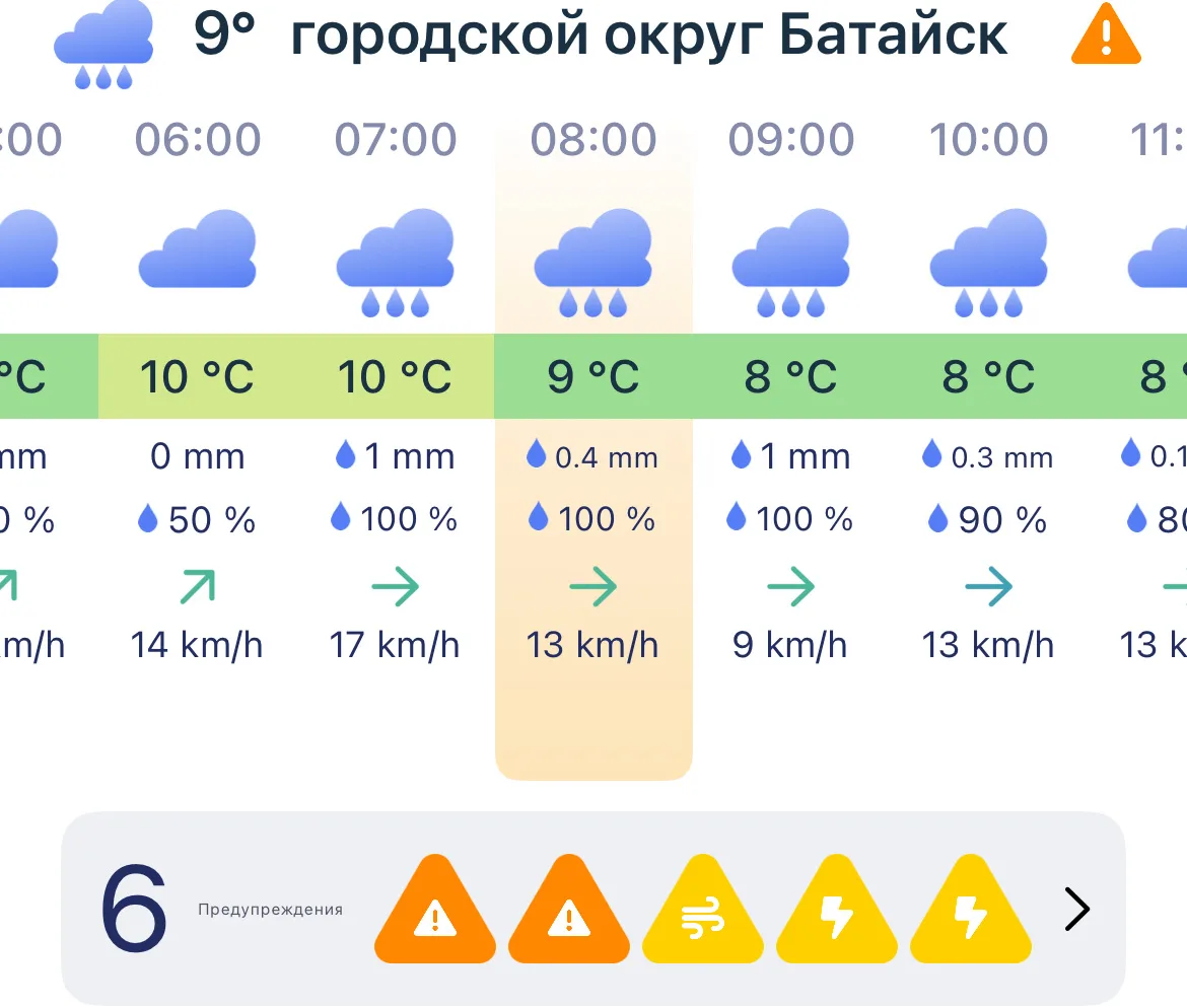В Батайске будет дождливая погода. Утром и днем ожидаются осадки. Днем потеплеет до +10 градусов. Ветер до 6 м/с.
