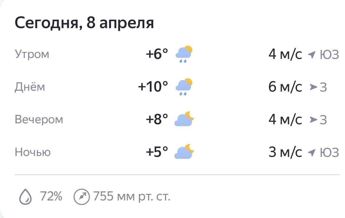 В среду, 8 апреля, дождь будет идти с утра до ночи. В городе похолодает до +10. Ветер до 6 м/с.