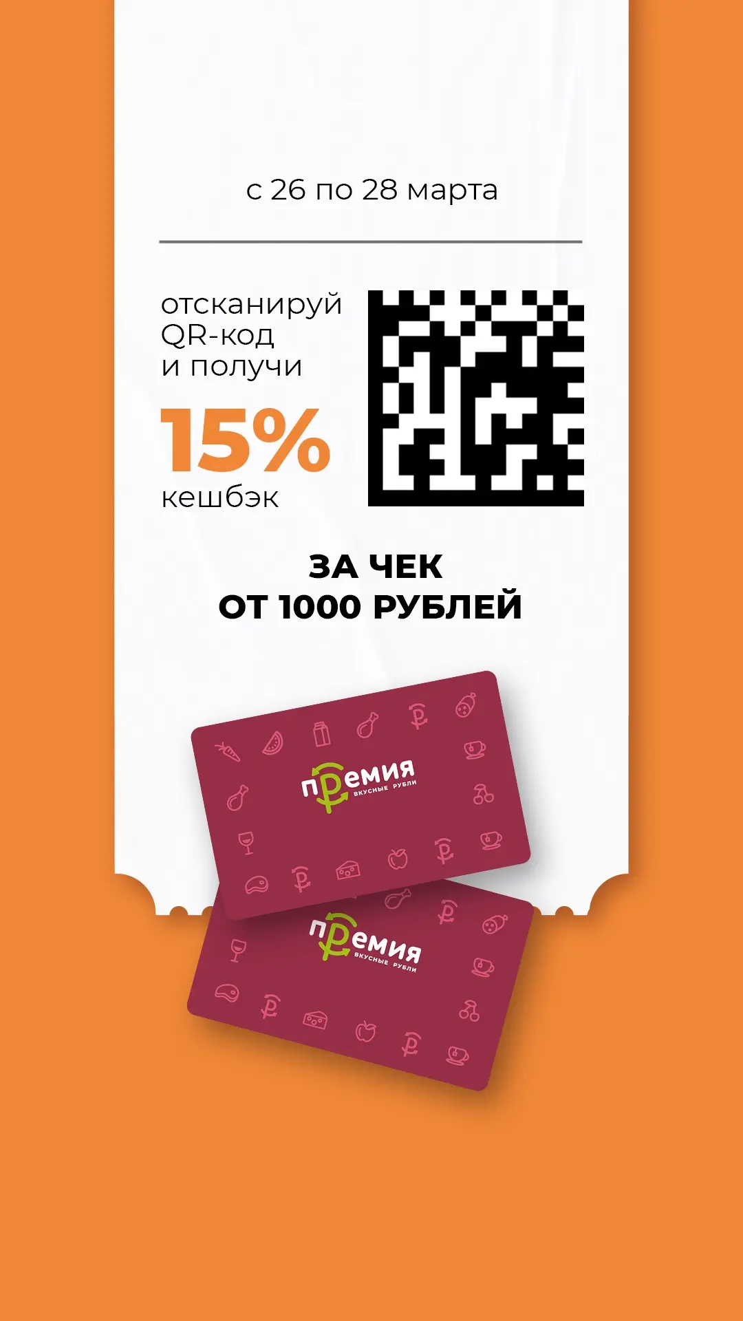 🎁 15% кешбэк за чек от 1000 рублей с 26 по 28 марта.