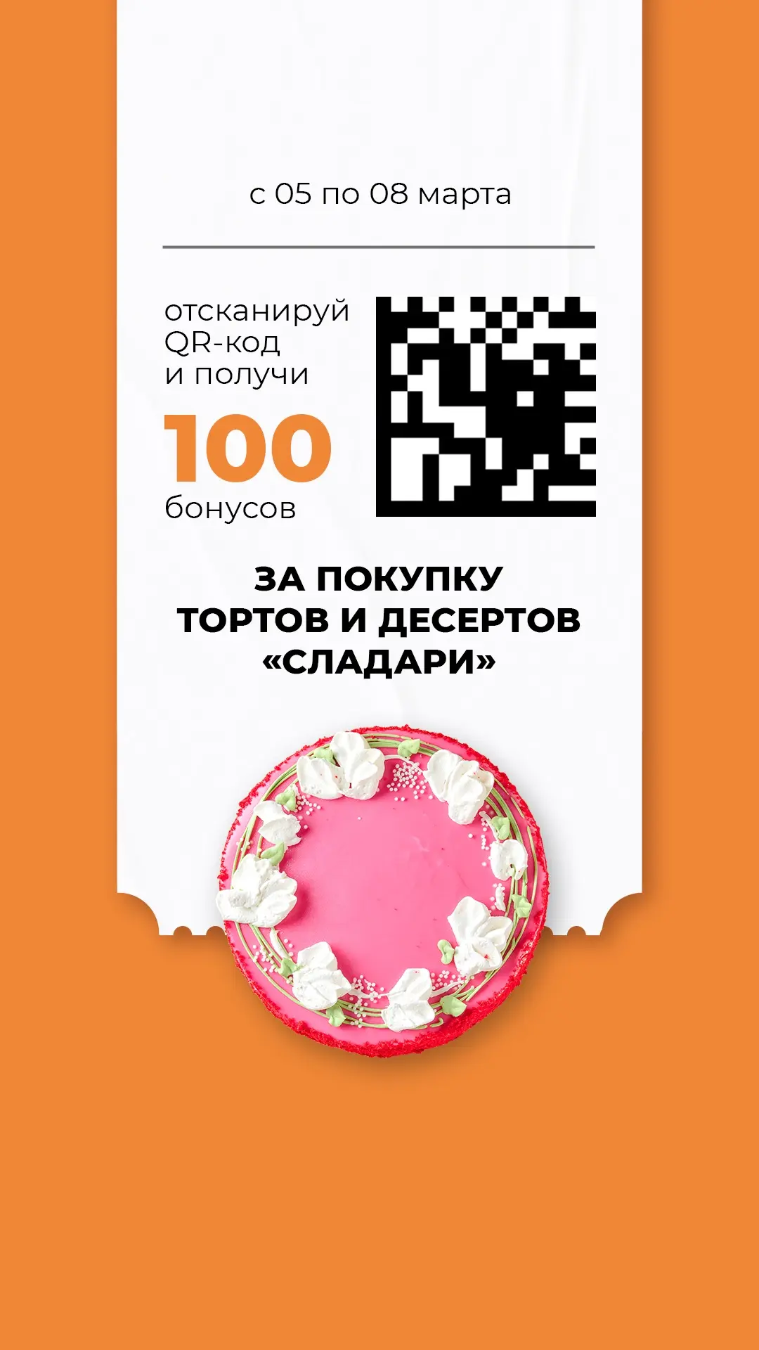 🪙 100 бонусов за покупку тортов и десертов Сладари.