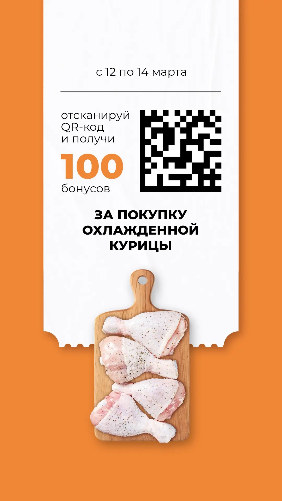 🎁 100 бонусов за покупку охлажденной курицы с 12 по 14 марта.