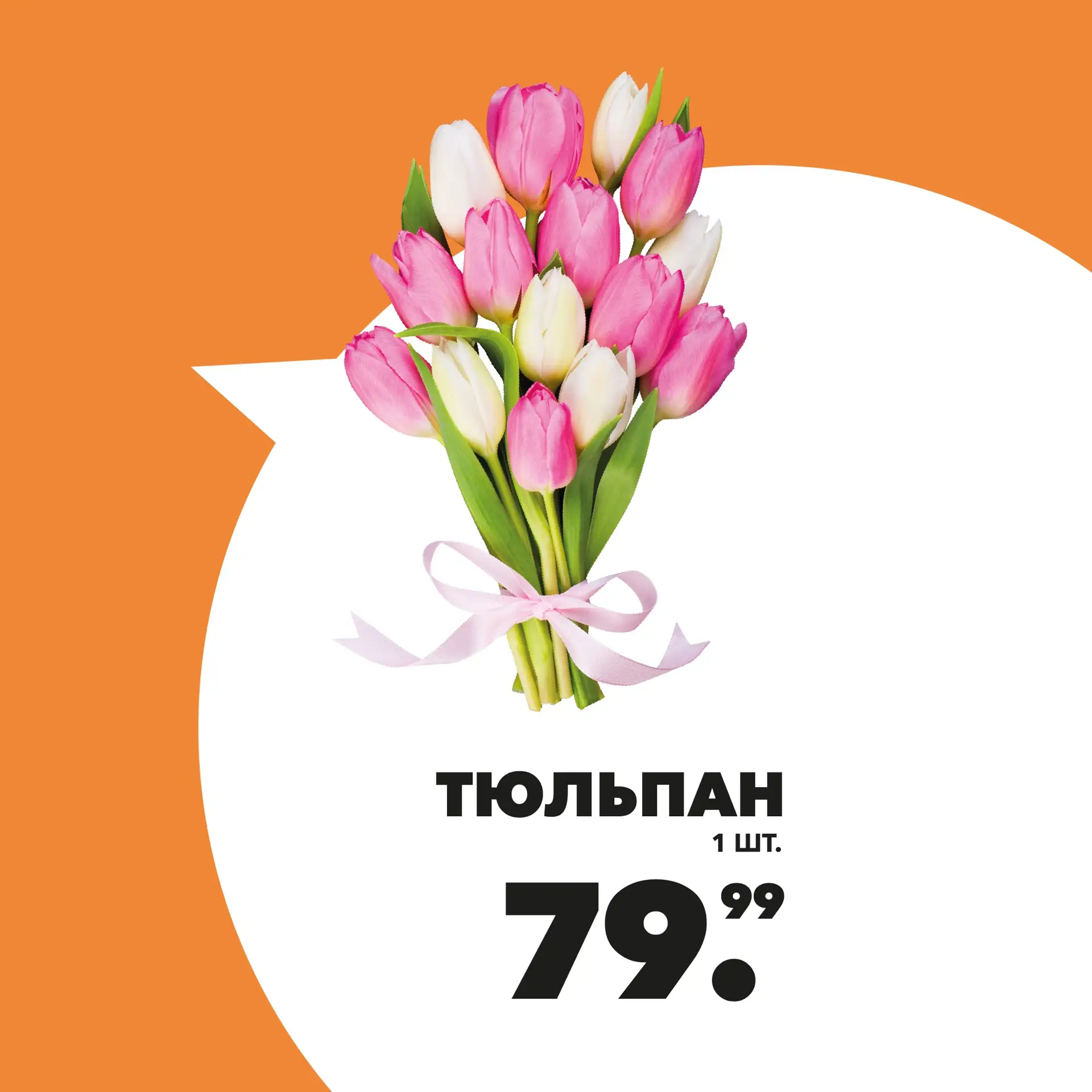 Хит сезона: тюльпаны всего по 79,99 руб. за штуку🌷А еще розы всех цветов, хризантемы, нарциссы и экзотические орхидеи в капсулах🌺