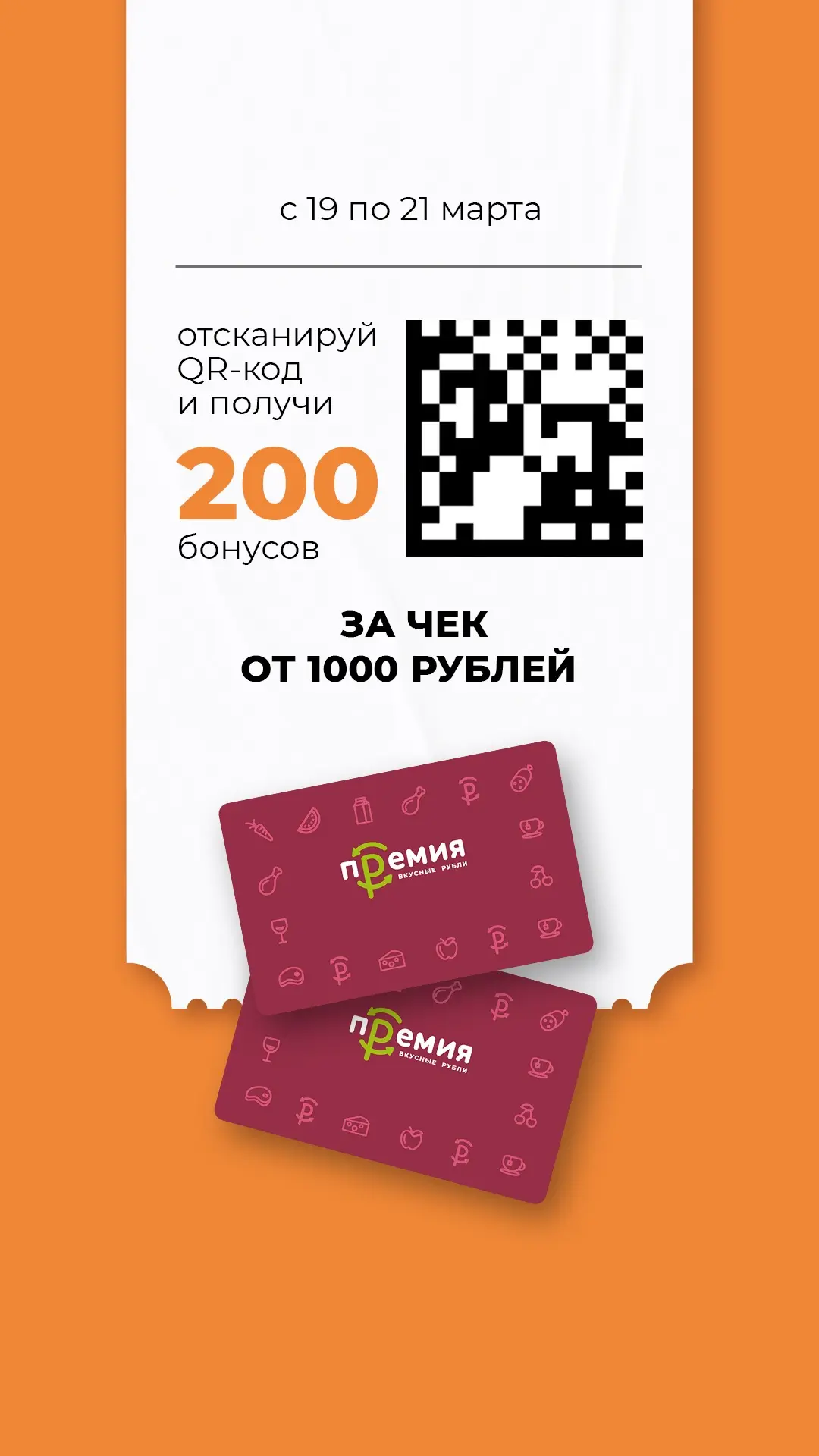 🎁 200 бонусов за чек от 1000 рублей с 19 по 21 марта.