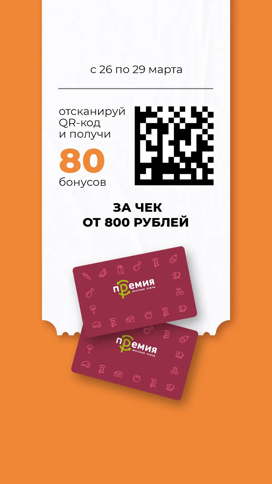 🪙 80 бонусов за чек от 800 рублей с 26 по 29 марта.