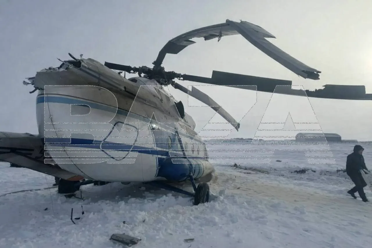 По данным «Базы», вертолет Ми-8 приземлился в районе села Панаевск. Он не долетел до посадочной площадки 400 метров, жёстко сел и перевернулся на бок.