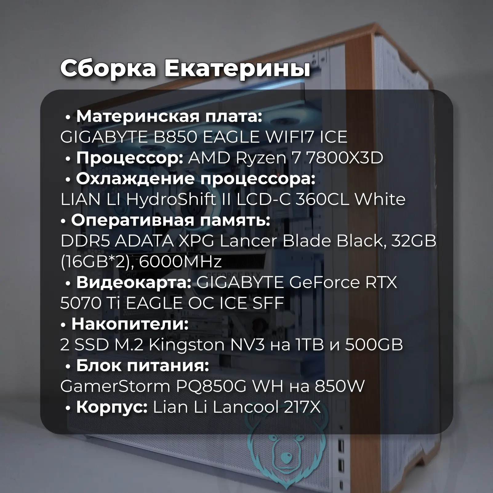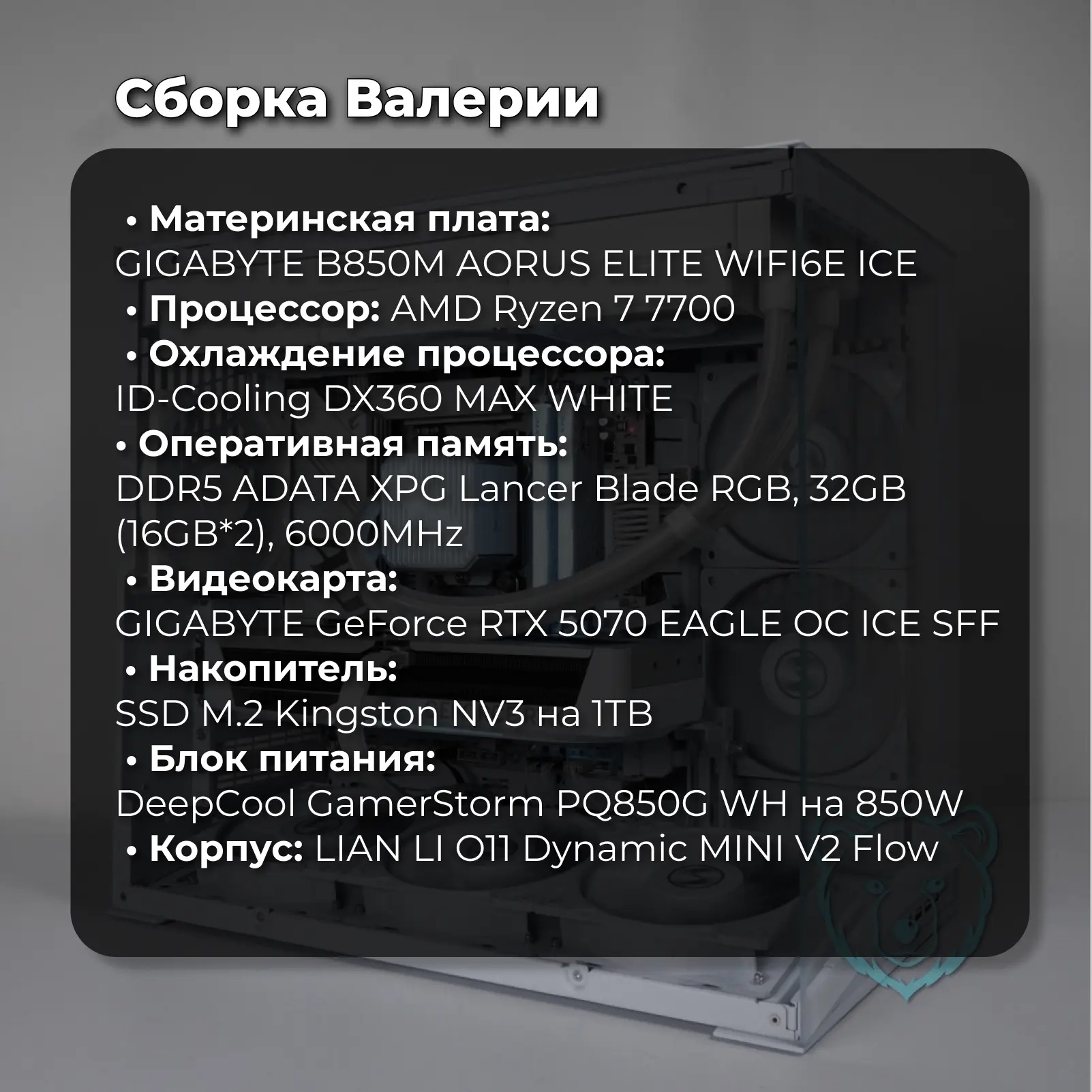 Предложили сбалансированную конфигурацию AMD R7 7700 и видеокарта RTX 5070 которая одинаково хорошо подходит и для игр, и для работы с графикой, видеомонтажа, и для 2K-гейминга. Обязательные условия — полностью белая сборка и отсутствие подсветки. Корпус O11 Dynamic MINI V2 Flow от LIAN LI как нельзя лучше смотрится без светящихся вентиляторов!