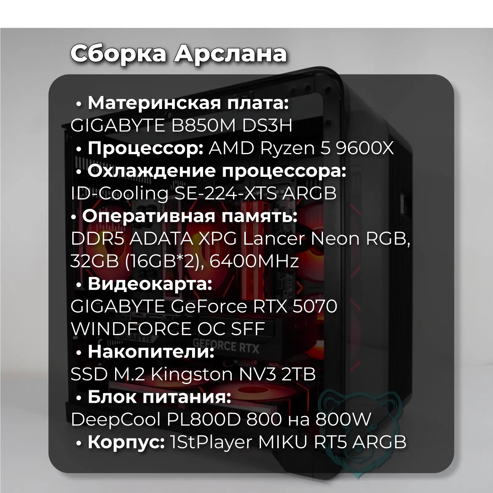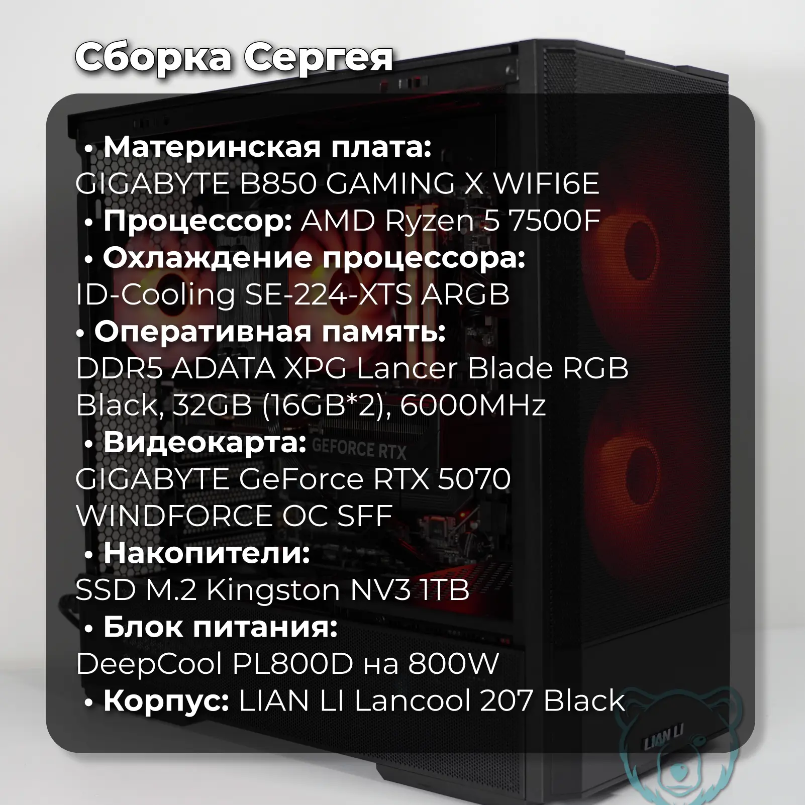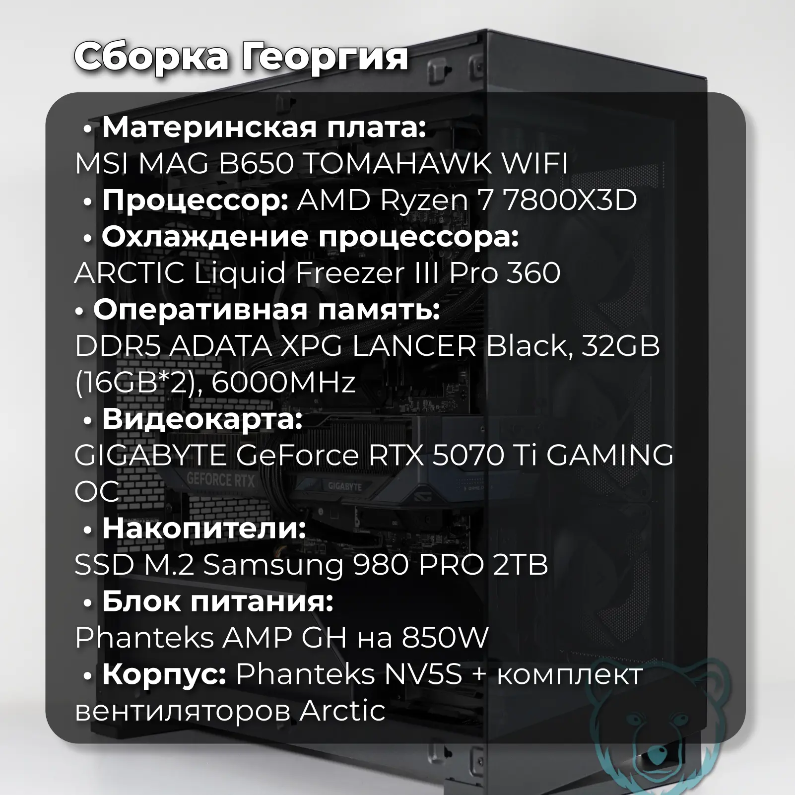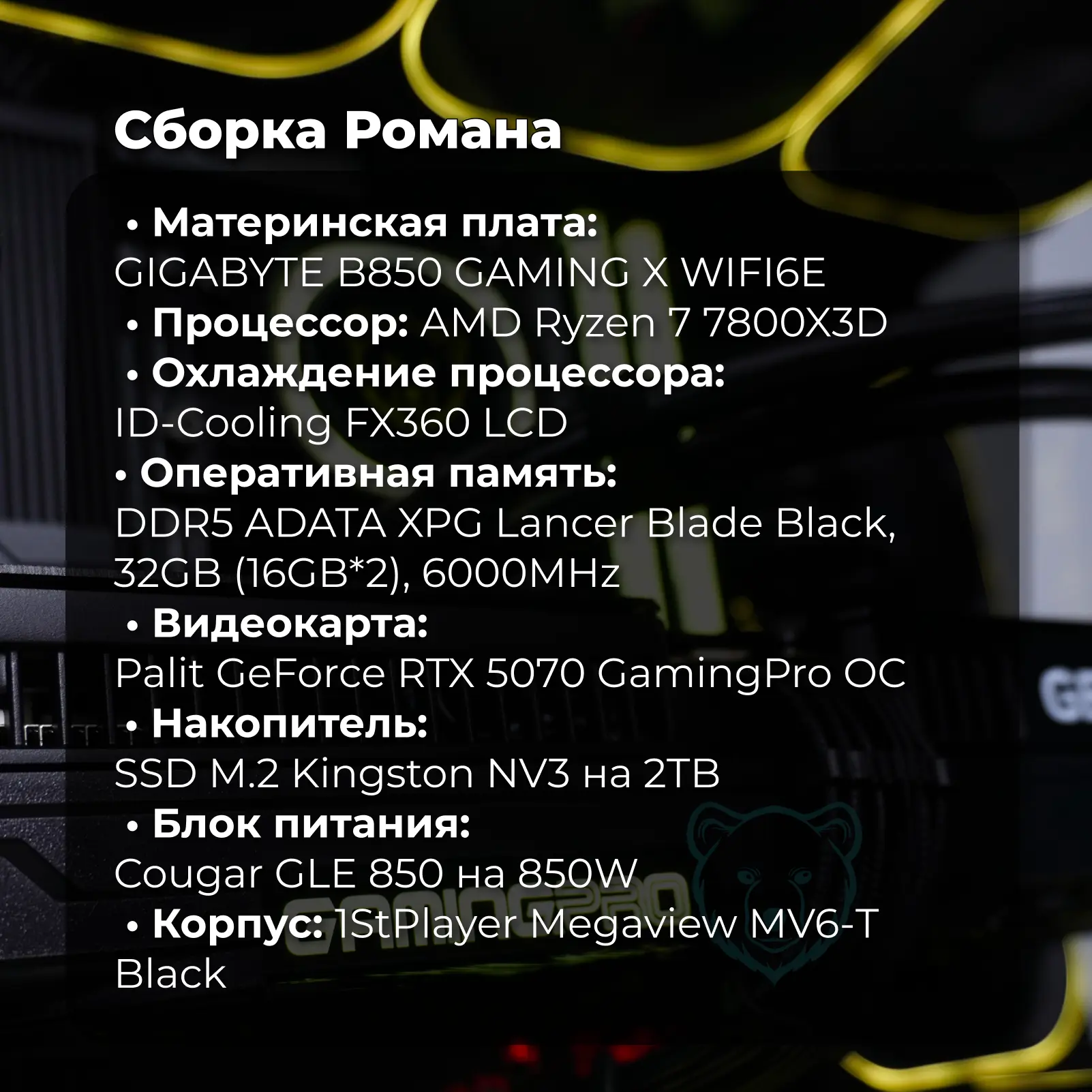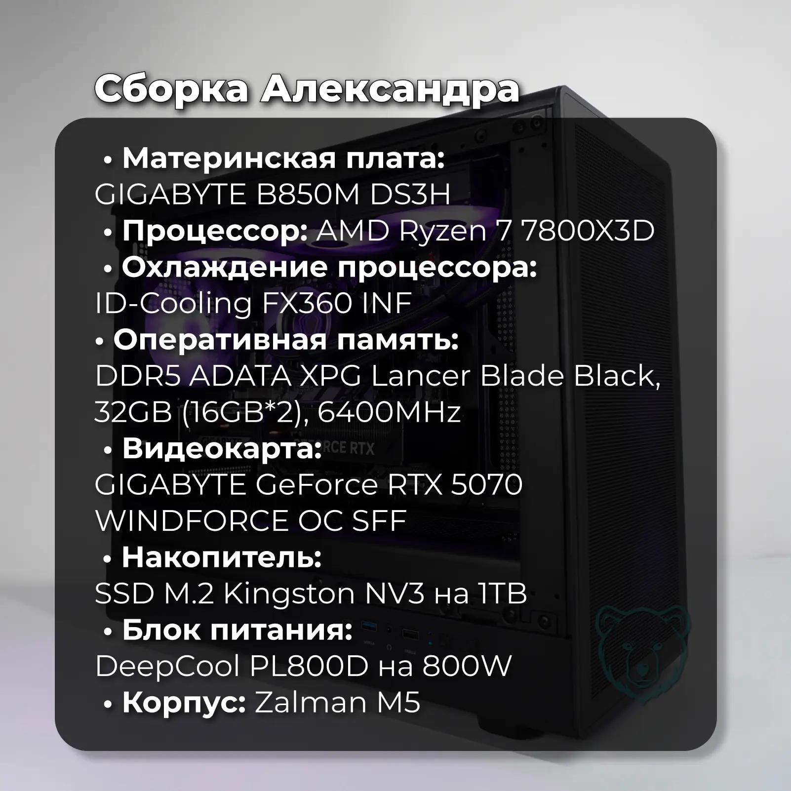1. В основе связка процессора AMD Ryzen 7 7800X3D и видеокарты Nvidia GeForce RTX 5070 12GB.