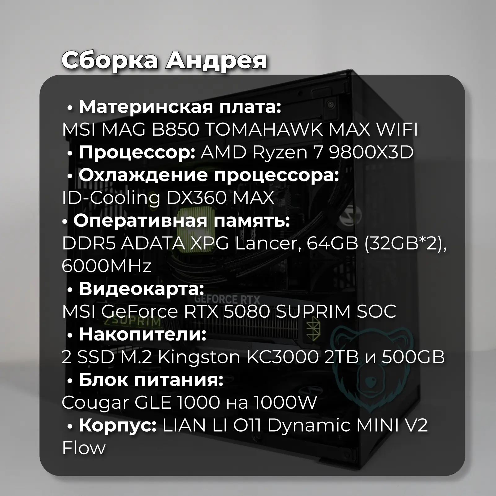 Лучшей основой конфигурации для 4K мы считаем связку процессора AMD Ryzen 7 9800X3D и Nvidia GeForce RTX 5080 16GB.