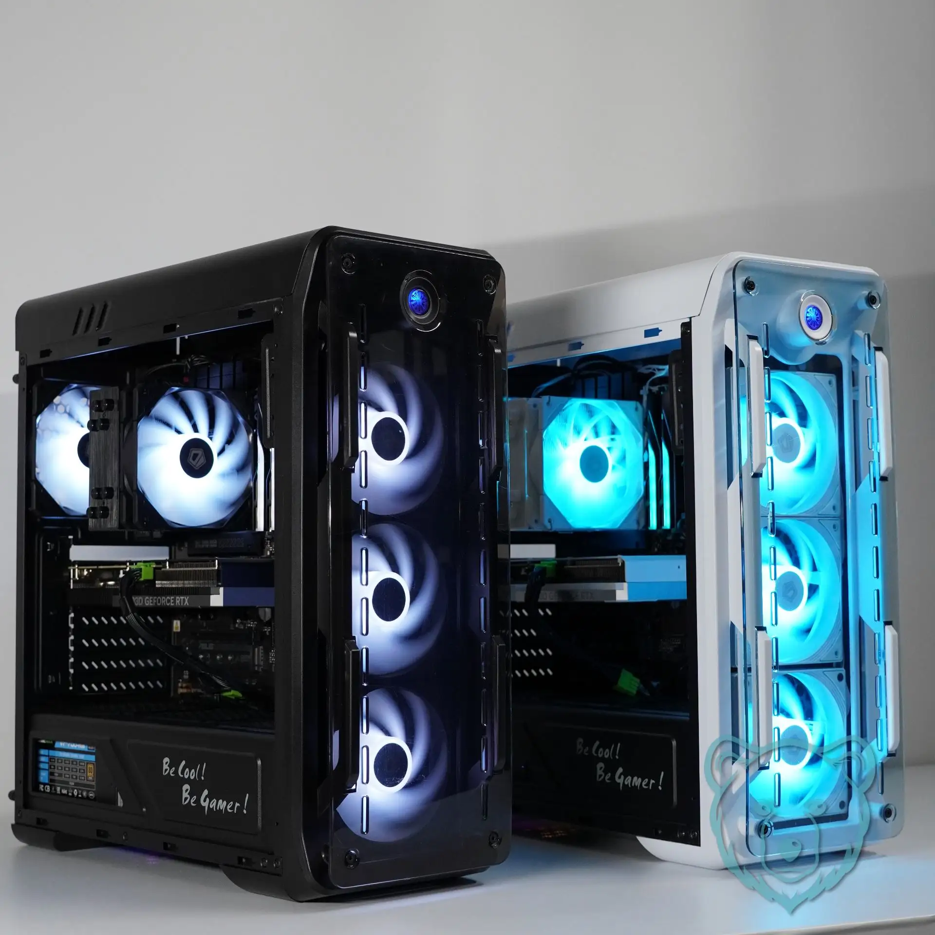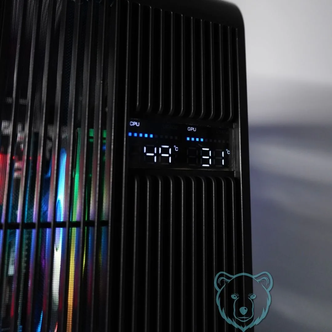 6. 1STPLAYER RT5 ARGB. Корпус-«аквариум», на котором отображается температура процессора и графического в видеокарте.