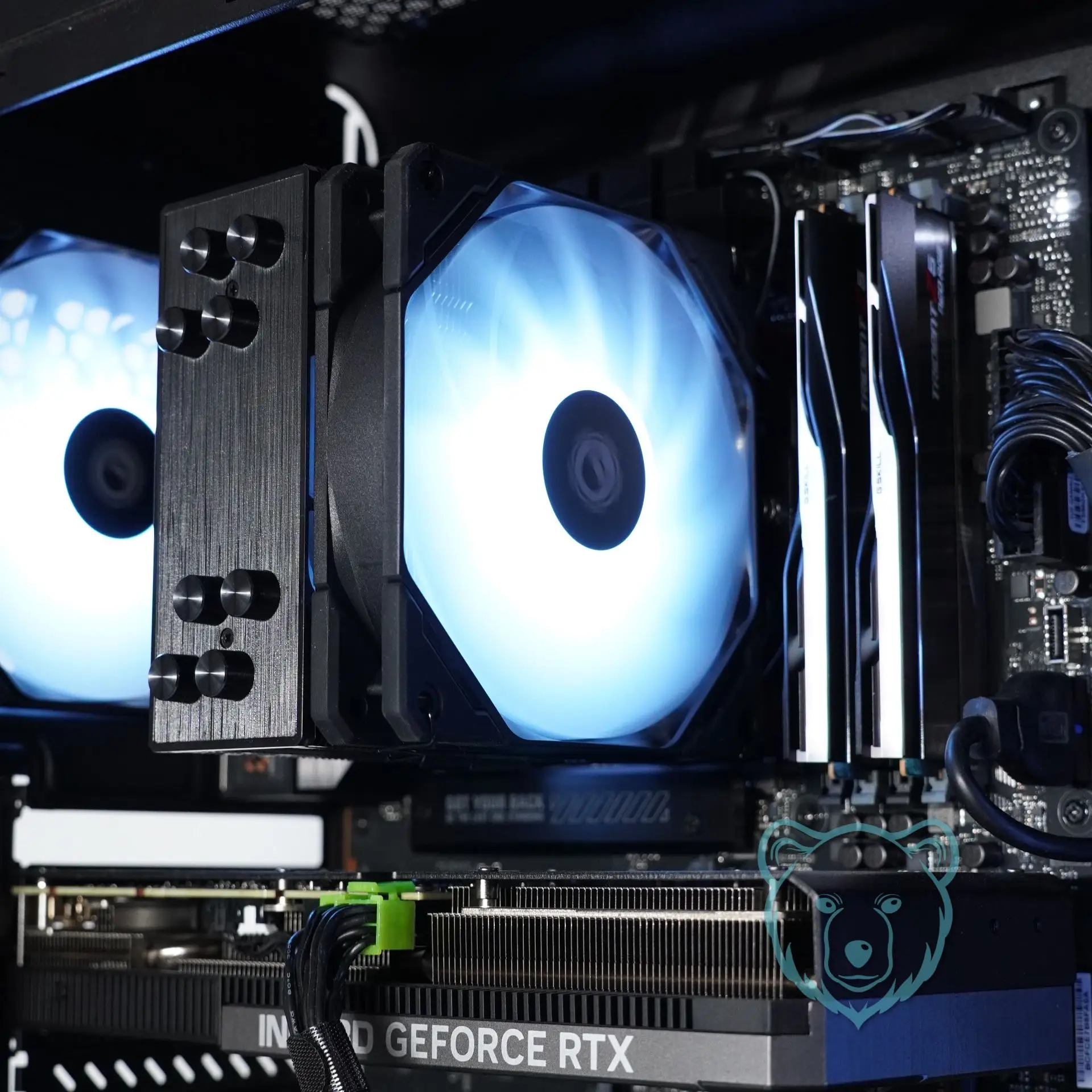 3. Охлаждение процессора. Стоковый кулер едва ли справился бы с новым процессором. Установили башенный, который точно его вывезет — Id-Cooling SE-224-XTS ARGB.