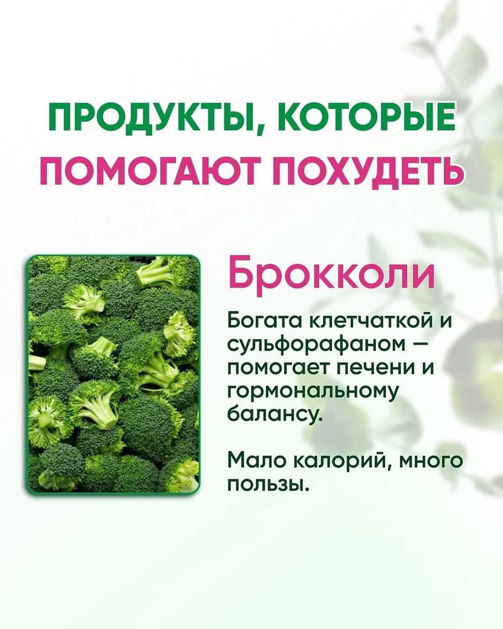 Брокколи — защищает клетки от повреждений, мощный антиоксидант.