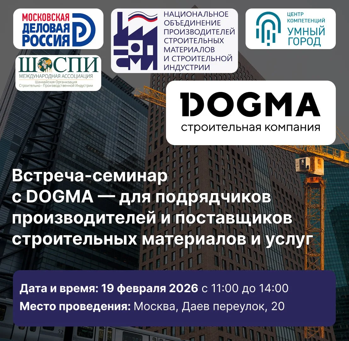 ➡️ Ассоциация НОПСМ совместно с Московским региональным отделением «Деловой России», Международной Ассоциацией «ШОСПИ» и Центром компетенций «Умный город» приглашает участников отрасли на встречу-семинар с федеральным девелопером DOGMA