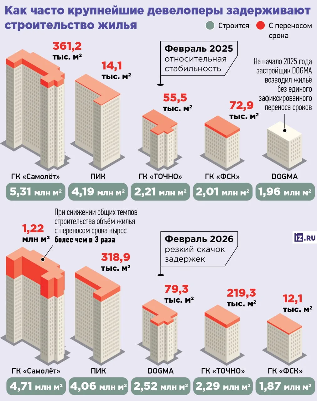 В целом девелоперы стремятся минимизировать переносы, однако в текущих экономических условиях полностью исключить такие риски затруднительно.