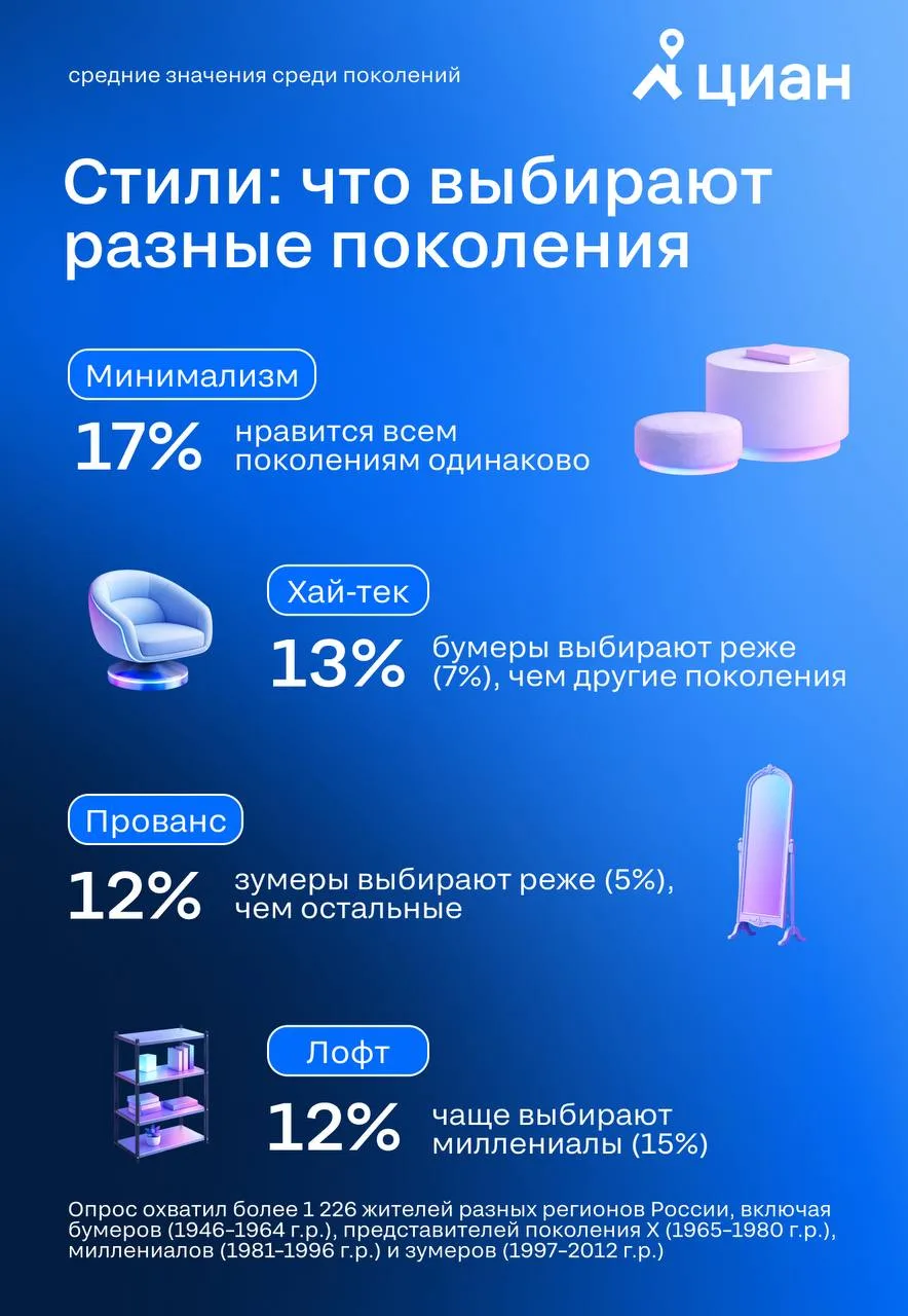 Самым популярным стилем среди всех поколений стал минимализм – 17% опрошенных.