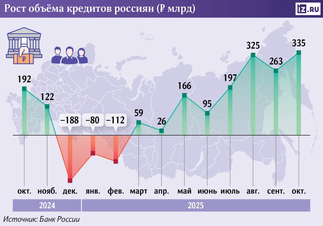 В октябре объём займов у населения вырос на 335 млрд рублей и достиг 38,3 трлн — Известия