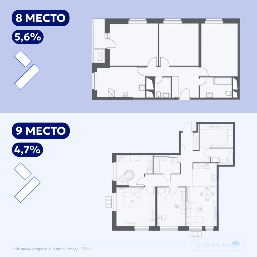 Как показывает рейтинг, покупатели чаще отдают предпочтение полноценным комнатам, а не гибридным форматам вроде евро-двушек или евро-трешек.