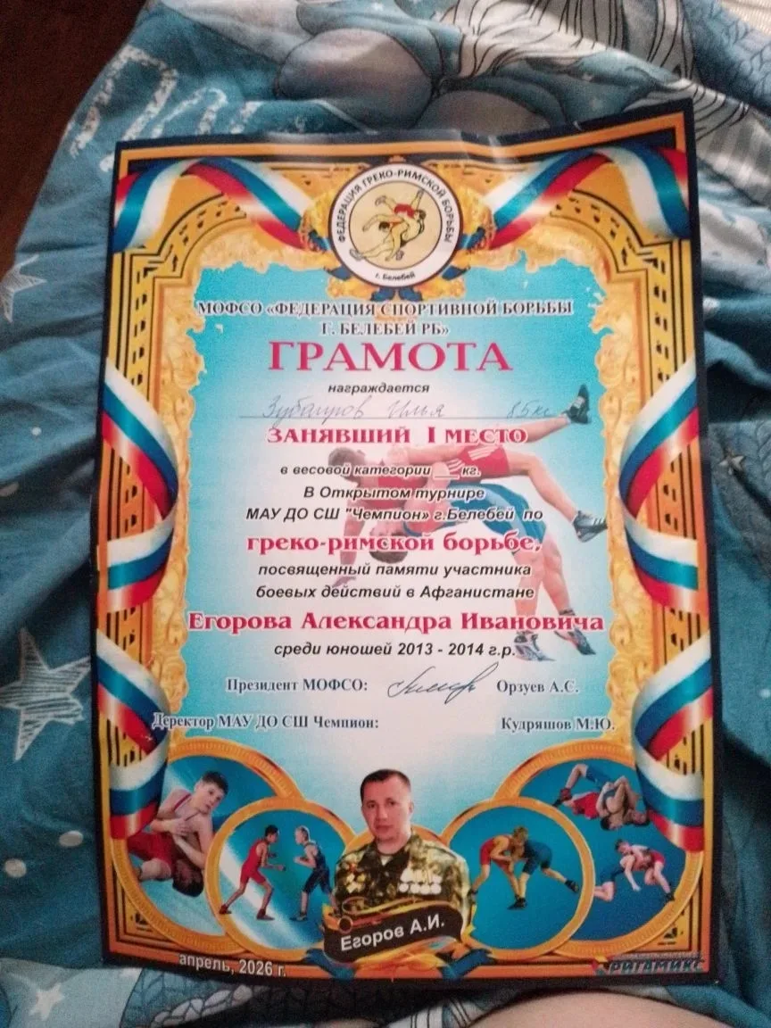 04.04.2026 г. в г. Белебей прошёл Открытый турнир МАУ ДО СШ "Чемпион" по греко-римской борьбе, посвящённый памяти участника боевых действий в Афганистане Егорова А.И., среди юношей 2013-2014 г.р.
